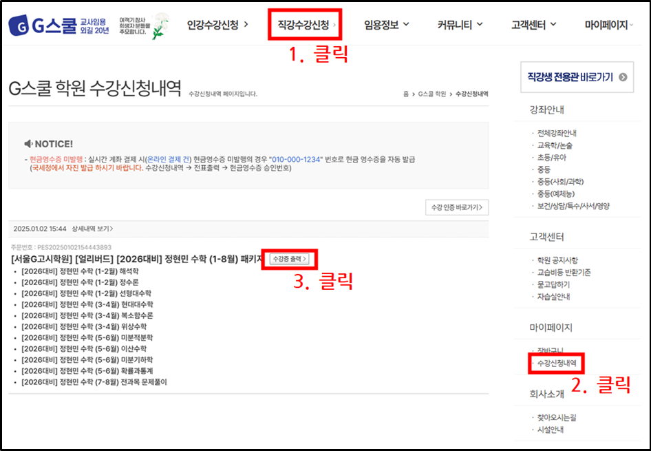 ① [1~6패키지], [1~8패키지] 직강생&인강생: 해당 연도 말일(12월 31일)까지