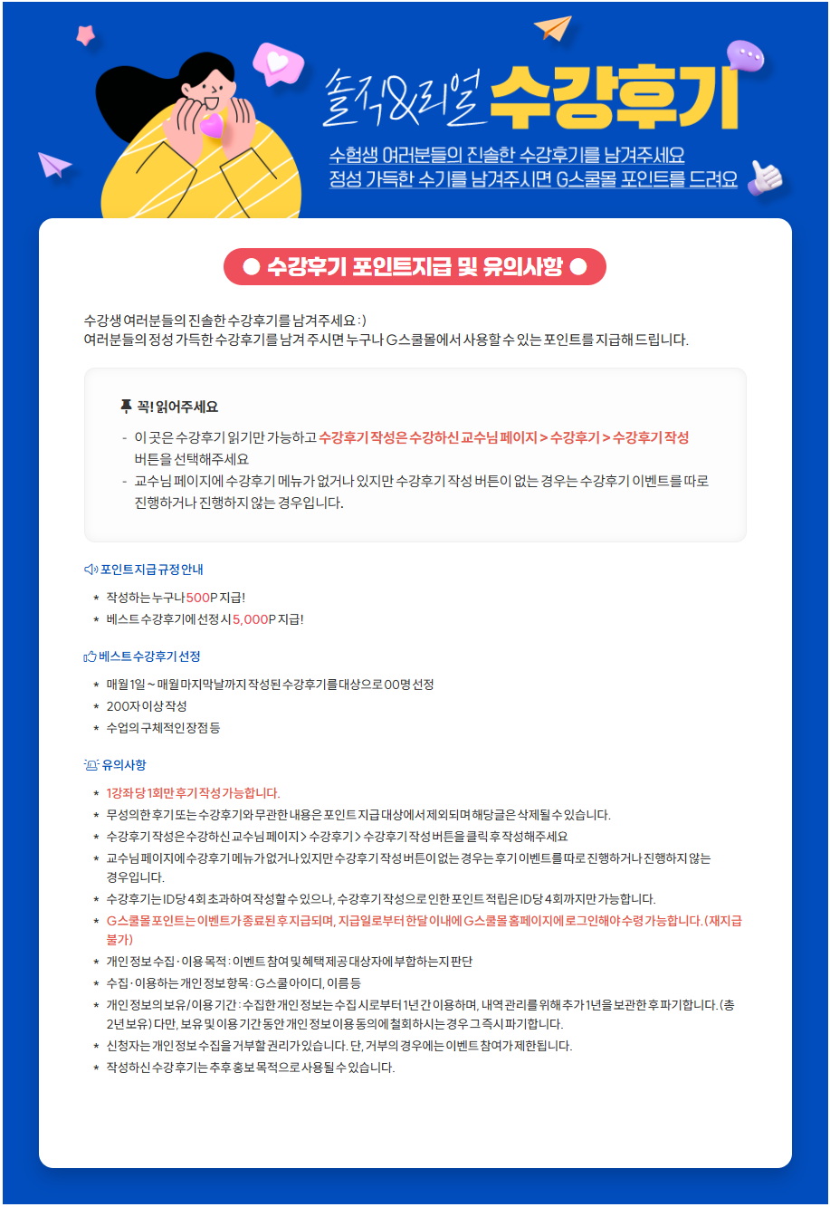 [G스쿨] [정현민 전공수학] 진솔한 수강후기를 남겨주세요 작성자G스쿨|작성시간25.05.19|조회수175 목록 댓글 0 글자크기 작게가 글자크기 크게가 위 이미지를 클릭하시면 [정현민 전공수학] 수강후기 작성페이지로 이동합니다. 다음검색 현재 게시글 추가 기능 열기 북마크 공유하기 신고 센터로 신고 댓글 댓글 0 댓글쓰기 답글쓰기 댓글 리스트