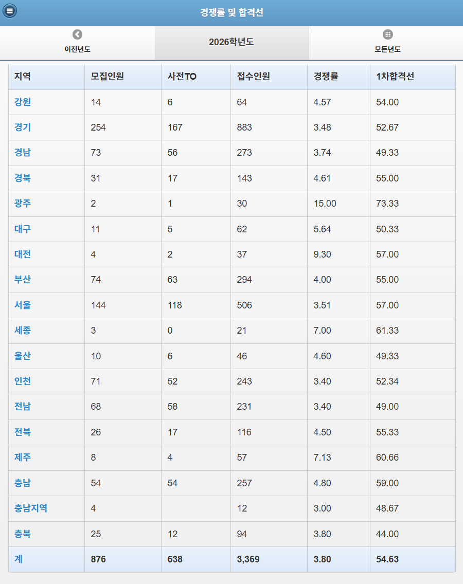 2026학년도 중등임용수학 1차 합격선 작성자정현민 전공수학|작성시간25.12.26|조회수412 목록 댓글 0 글자크기 작게가 글자크기 크게가 위 사진을 클릭하면 지역별, 연도별로 오름차순, 내림차순으로 정렬하여 확인이 가능합니다. 다음검색 현재 게시글 추가 기능 열기 북마크 공유하기 신고 센터로 신고 댓글 댓글 0 댓글쓰기 답글쓰기 댓글 리스트