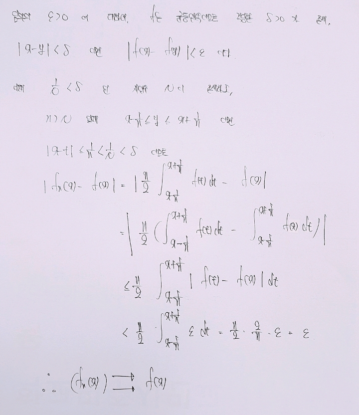 함수항 급수에서의 적분평균값 정리 작성자구르밍|작성시간19.10.05|조회수282 목록 댓글 2 글자크기 작게가 글자크기 크게가 차례대로 문제 / 해설 / 제 풀이 인데 제 풀이대로 적분의 평균값정리를 사용해서 풀어도 될까요?? 다음검색 현재 게시글 추가 기능 열기 북마크 공유하기 신고 센터로 신고 댓글 댓글 2 댓글쓰기 답글쓰기 댓글 리스트 삭제된 댓글입니다. 답댓글 작성자구르밍 작성자 본인 여부 작성자 | 작성시간 19.10.05 이렇게 수정해봤는데 검토 부탁드릴게요! 이미지 확대 댓글 전체보기