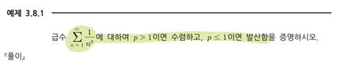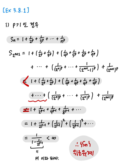 p급수 판정법 p>1일때의 증명과정 중 부분합 Sn이 유계임을 보이는 부분입니다.