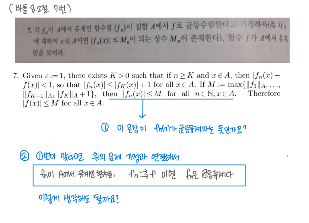 균등유계 관련 질문입니다! 작성자할쑤있다|작성시간21.07.28|조회수576 목록 댓글 1 글자크기 작게가 글자크기 크게가 사진에 질문도 포한되어있습니다 다음검색 현재 게시글 추가 기능 열기 북마크 공유하기 신고 센터로 신고 댓글 댓글 1 댓글쓰기 답글쓰기 댓글 리스트 작성자김성희 | 작성시간 21.07.30 함수 하나가 아닌 {f_n}이 균등유계라고 하는게 맞습니다. 댓글 전체보기