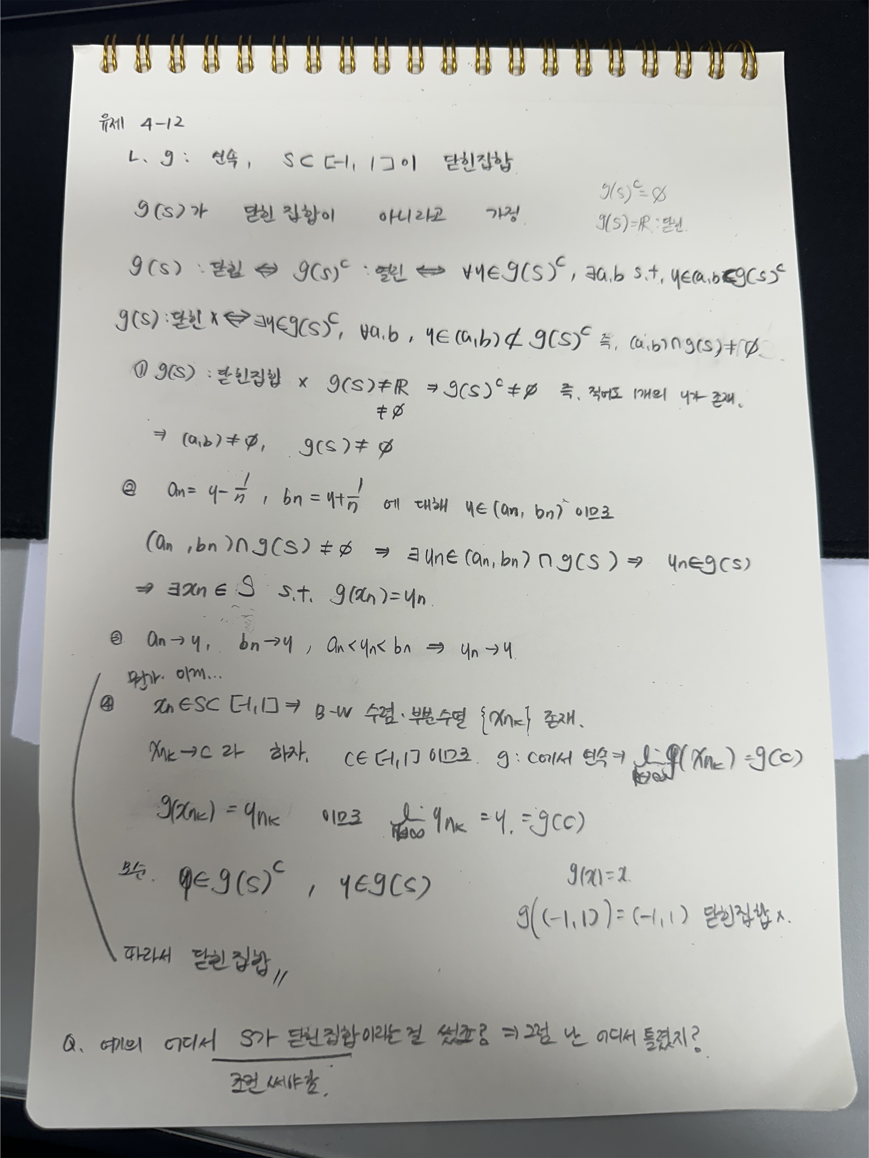 유제 4-12를 증명하고자 풀이를 써 보았는데, S가 닫힌집합이라는 조건을 쓰지 않아서 틀린 증명입니다.