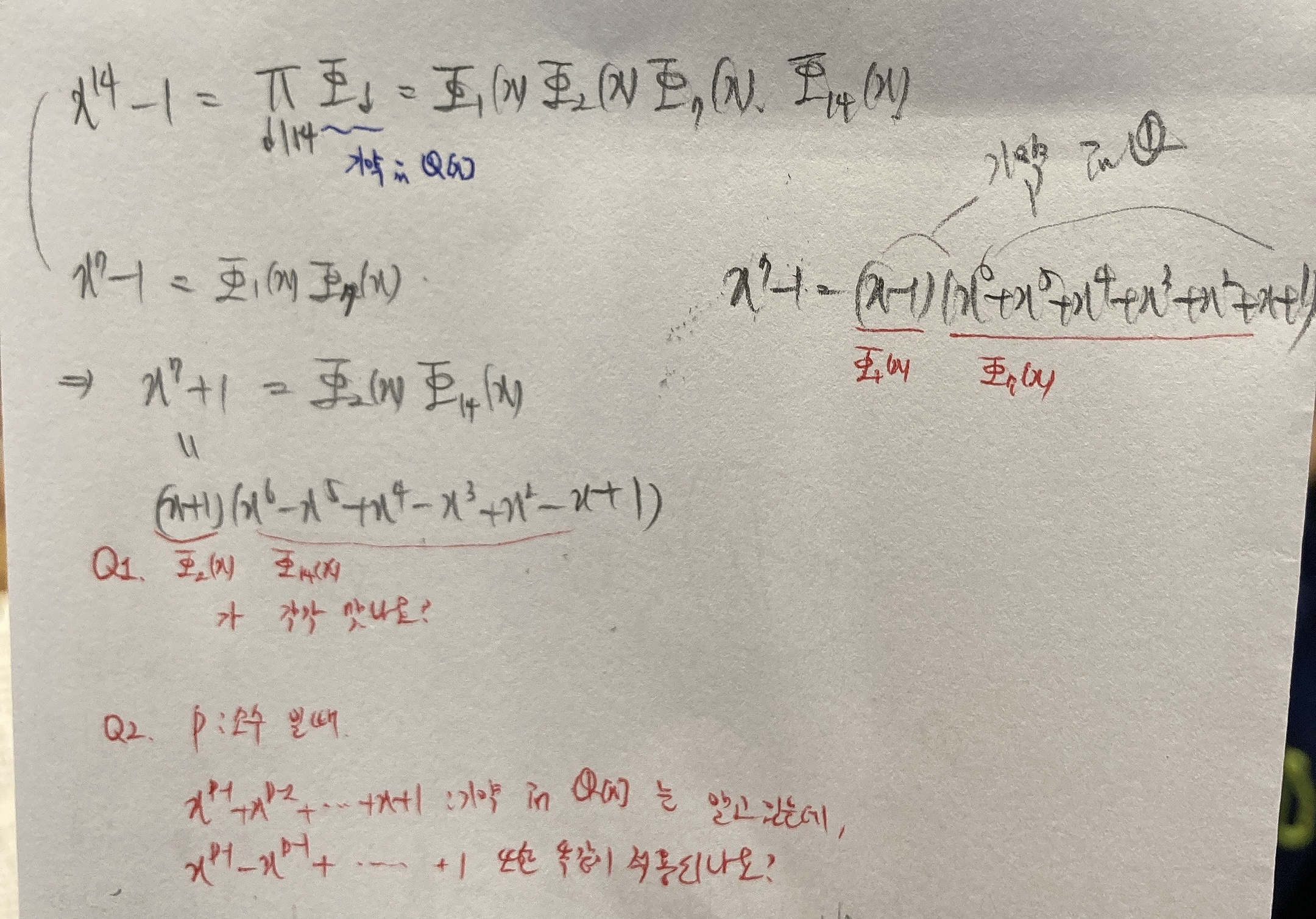 원분다항식 그리고 기약에 대해 질문 작성자털스키|작성시간21.03.19|조회수1,371 목록 댓글 1 글자크기 작게가 글자크기 크게가 사진에 질문 두 개 있습니다! 다음검색 현재 게시글 추가 기능 열기 북마크 공유하기 신고 센터로 신고 댓글 댓글 1 댓글쓰기 답글쓰기 댓글 리스트 작성자유현미 | 작성시간 21.03.22 1네, 맞습니다.2p:홀수인 소수일 때,f(x)=x^(p-1)-x^(p-2)+...-x+1 라 하면 f(x)=(x^p+1) / (x+1) 이고,f(x-1)=((x-1)^p+1) / x 가 Eisenstein 판정법에 의해 Q[x]에서 기약이므로 f(x) 역시 Q[x]에서 기약임을 알 수 있습니다. 댓글 전체보기