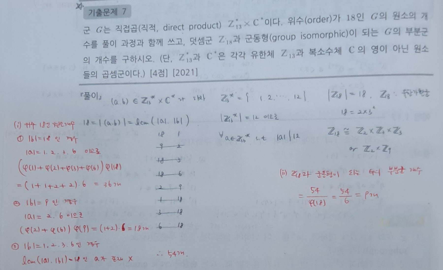 1. 오일러함수로 위수를 구하는건 순환군에서만 적용되는줄 알았는데 주어진 군G는..순환군이 아니지 않나요? 일반적으로 위수 n을 갖는 원소의 개수를 오일러함수로 구할수있나요??