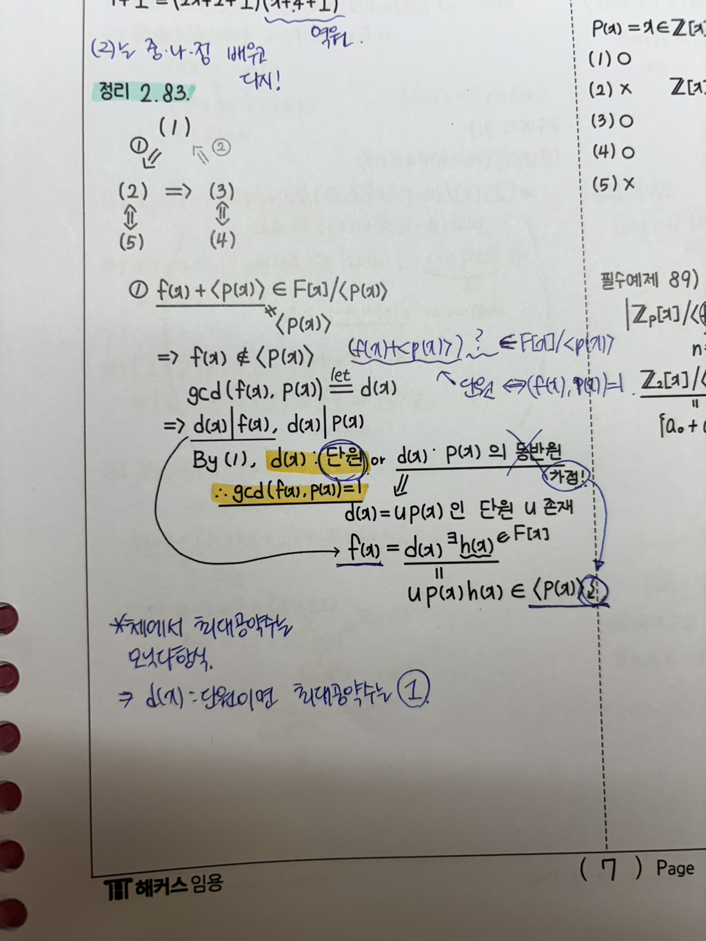 gcd(f(x),p(x))=d(x) 즉 단원이라는 소리인데 그러면 d(x)가 무조건 1이 된다는 말씀인가요..?