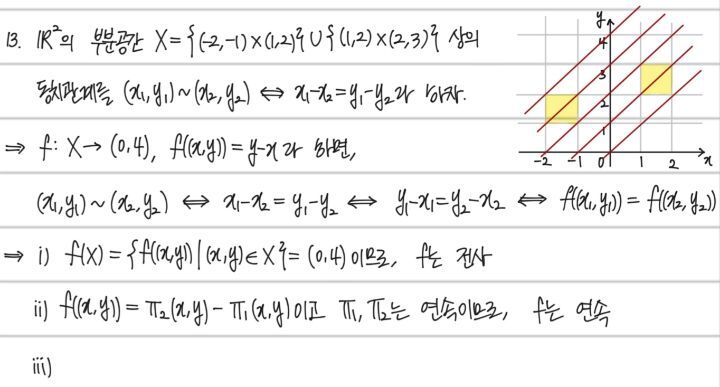 차례로 동치관계 ~에 의한 상공간이 위상동형임을 보이려고 하는데, 열린사상 또는 닫힌사상이 됨을 보이는 데에서 막히네요ㅠㅠ