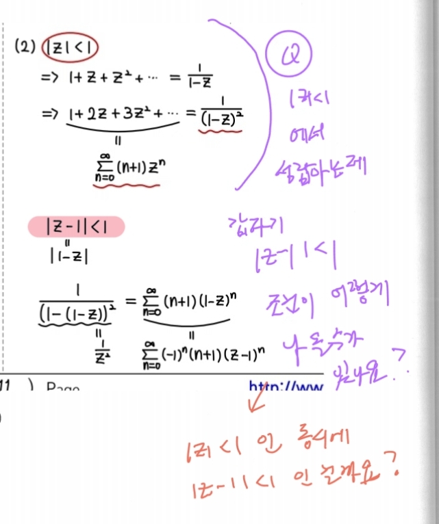 필수예제49 질문있어요 작성자나마언|작성시간24.04.04|조회수93 목록 댓글 1 글자크기 작게가 글자크기 크게가 다음검색 현재 게시글 추가 기능 열기 북마크 공유하기 신고 센터로 신고 댓글 댓글 1 댓글쓰기 답글쓰기 댓글 리스트 작성자수정과 | 작성시간 24.04.05 |z|<1일 때 세 번째 줄의 등식이 성립하므로 z 자리에 1-z를 대입하면 |z-1|=|1-z|<1 일 때 문제의 식이 성립함을 알 수 있습니다. 댓글 전체보기