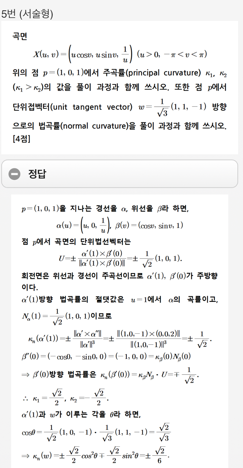 답댓글 작성자수학임고생ㅇ 작성자 본인 여부 작성자 작성시간 25.11.18 법곡률은 곡면 위의 점 p와 접벡터의 방향에만 의존해서 둘 다 상관없다로 이해하였는데 제가 이해한게 맞을까요 ?