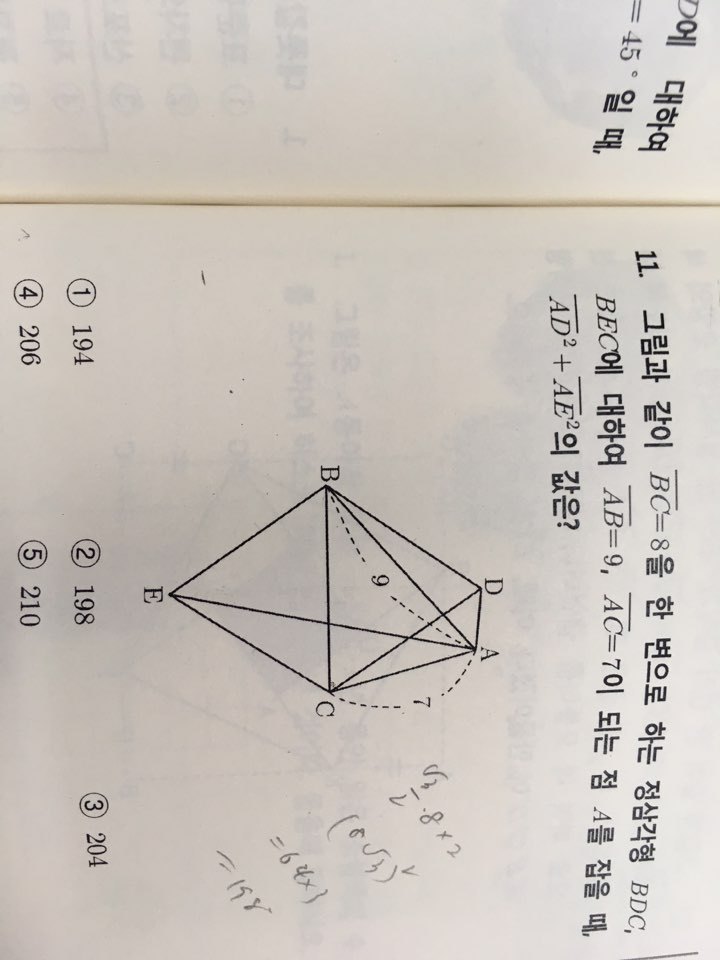 삼각형 도형 문제 작성자쇼팽|작성시간17.09.12|조회수598 목록 댓글 5 글자크기 작게가 글자크기 크게가 삼각형 도형 문제입니다. 다음검색 현재 게시글 추가 기능 열기 북마크 공유하기 신고 센터로 신고 댓글 댓글 5 댓글쓰기 답글쓰기 댓글 리스트 해당 댓글은 작성자와 운영진만 볼 수 있습니다. 작성자수학대통령 | 작성시간 17.09.13 피타고라스 정리 알면 쉽게 풀립니다. 작성자쇼팽 작성자 본인 여부 작성자 | 작성시간 17.09.13 구체적인 방법 알 수 있을까요? 답댓글 작성자수학대통령 | 작성시간 17.09.13 선분DE를 그어 잘 생각해 보세요. 답댓글 작성자수학대통령 | 작성시간 17.09.13 수학대통령 선분DE 중간에 점을 O로 잡으면 더 잘 보일듯하네요. 댓글 전체보기