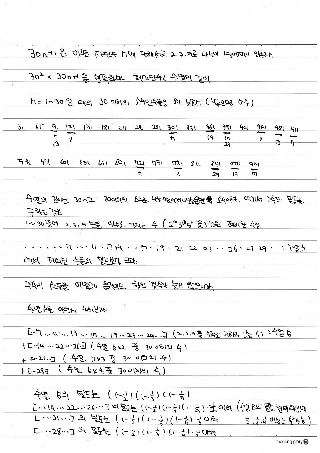 쉽게말하면 30n+1, 30n+7, 30n+11같은 수열엔 소수가 굉장히 많이 포함되어있고