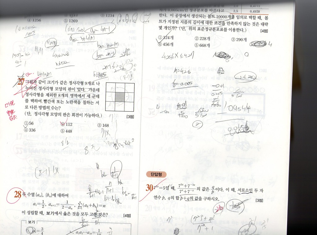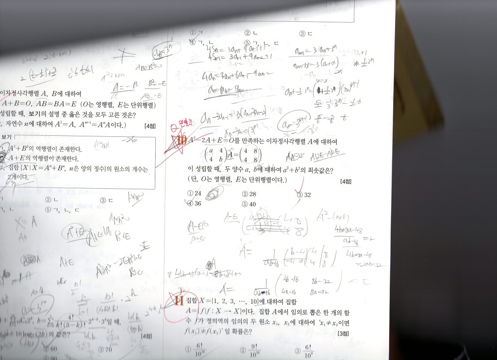 10. 역행렬존재하지 안으므로 ab=16 , 산술>= 기하에 의해 최소값 :32