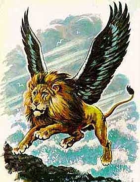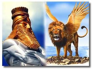 바벨론은 그 당시 실제로 독수리 날개를 가진 사자를 제국의 상징으로 하였다는 사실이 고고학에 의하여 밝혀졌다. 바벨론을 발굴한 결과 성벽의 부조와 조각에서 독수리 날개를 가진 사자가 발견되었다. 바벨론을 방문하는 방문객들은 벽돌담에 새겨진 사자 모양의 양각(陽刻)들과, 2400년이 지난 지금에도 넘어져 있는 석상 위에 웅크리고 앉아 있는 거대한 돌사자를 볼 수 있다. 성경에서도 실제로 바벨론을 사자로 직접 표현했으며(렘 4:7; 49:19; 50:17,44), 독수리로도 묘사했다(애 4:19; 겔 17:3,12).