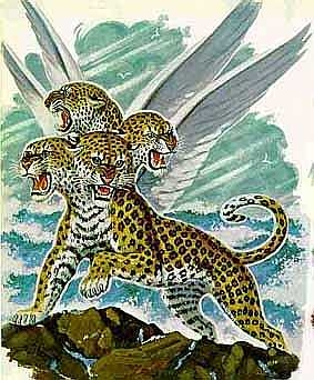 다니엘은 벨사살 왕 원년(B.C. 553년)의 어느 날 깊은 밤에 한 꿈을 꾸었는데, 바다로부터 올라오는 네 짐승을 보았다. 날개 달린 사자, 몸 한쪽이 기울어진 곰, 머리가 넷이고 날개가 넷 달린 표범, 그리고 동물학적인 분류가 도저히 불가능한 아주 무섭고 사나운 짐승이 그것들이다.