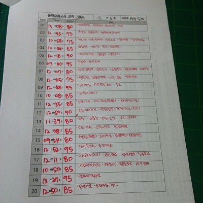 마지막으로 동형모의고사를 치면 각 회별 성적표와 푸는 데에 걸린 시간, 틀렸던 주제들을 간단히 메모해 남겨두었다. 일단 자신의 실력이 어느 정도인지, 약한 부분이 무엇인지 객관적으로 파악할 수 있다. 또한 약점으로 기록된 부분은 뒤에서 쓸 '암기노트' 제작에 큰 도움이 된다. 암기노트를 만들려고 해도 이미 지나간 시험지를 뒤적거리는 것만으로는 자신의 약한 부분을 파악하기 쉽지 않다. 해당 동형에 대한 해설, 복습을 끝내자마자 약점을 기록해두면 시험지를 다시 뒤적거릴 필요가 없어진다.