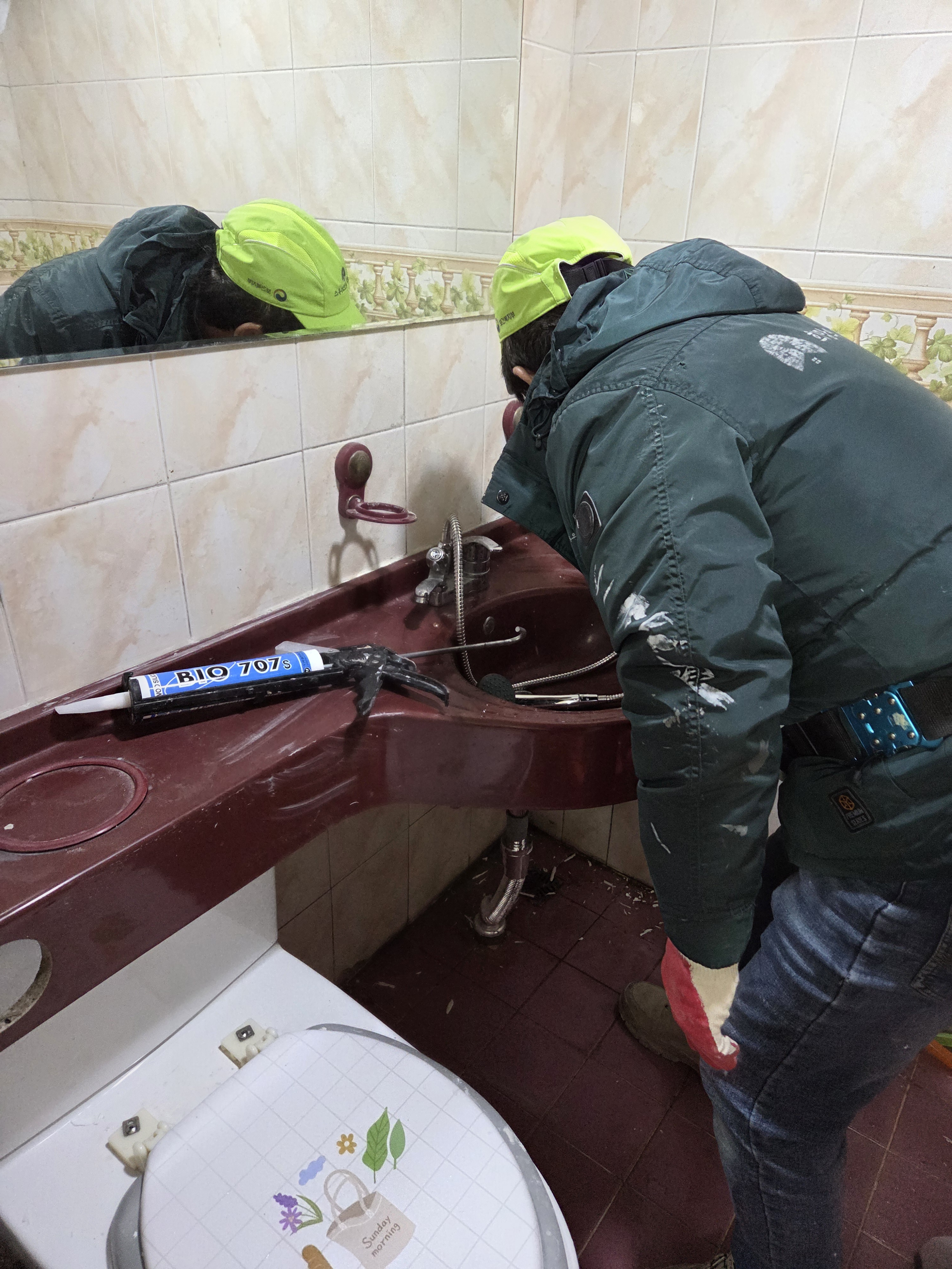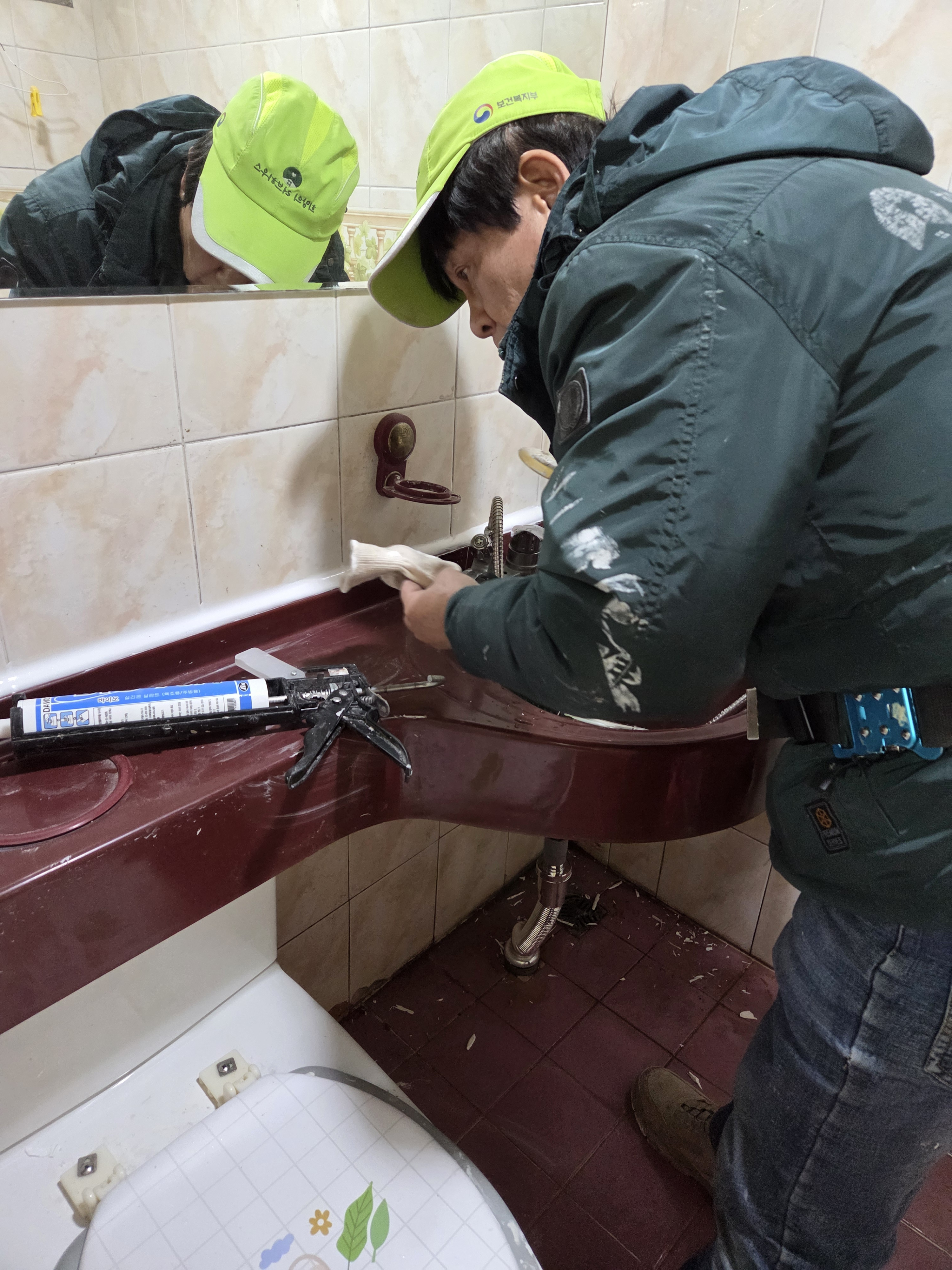 세면대에 다시 실리콘 코킹하고