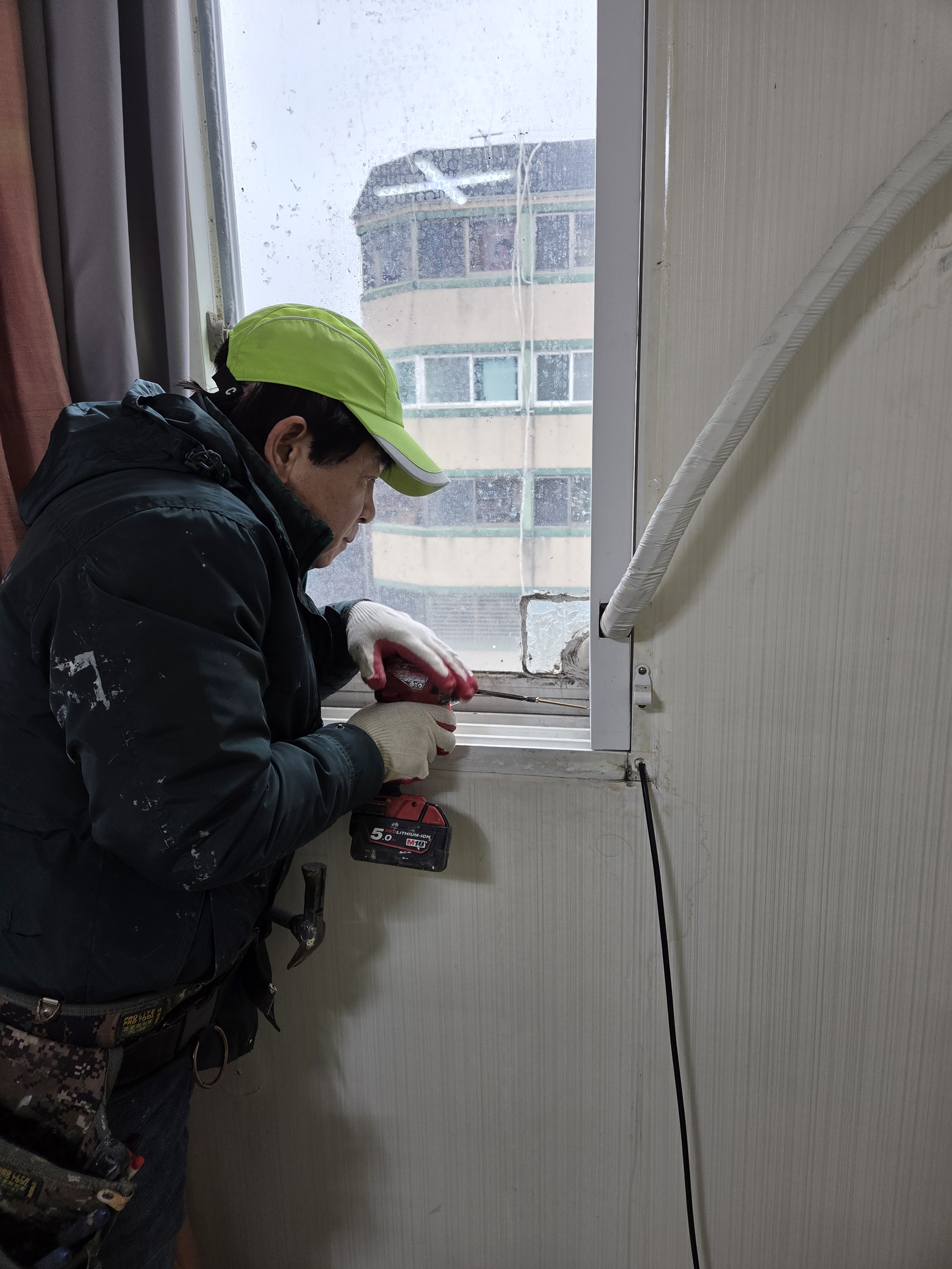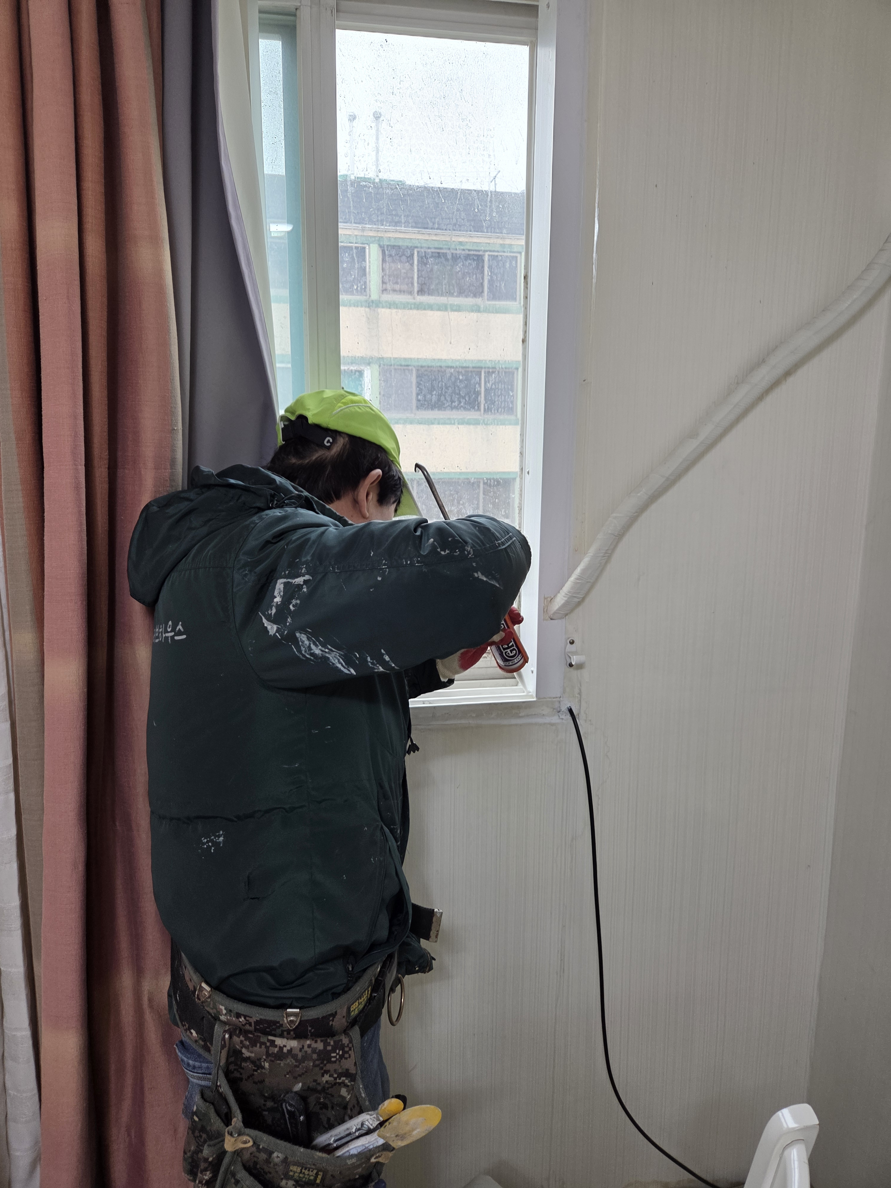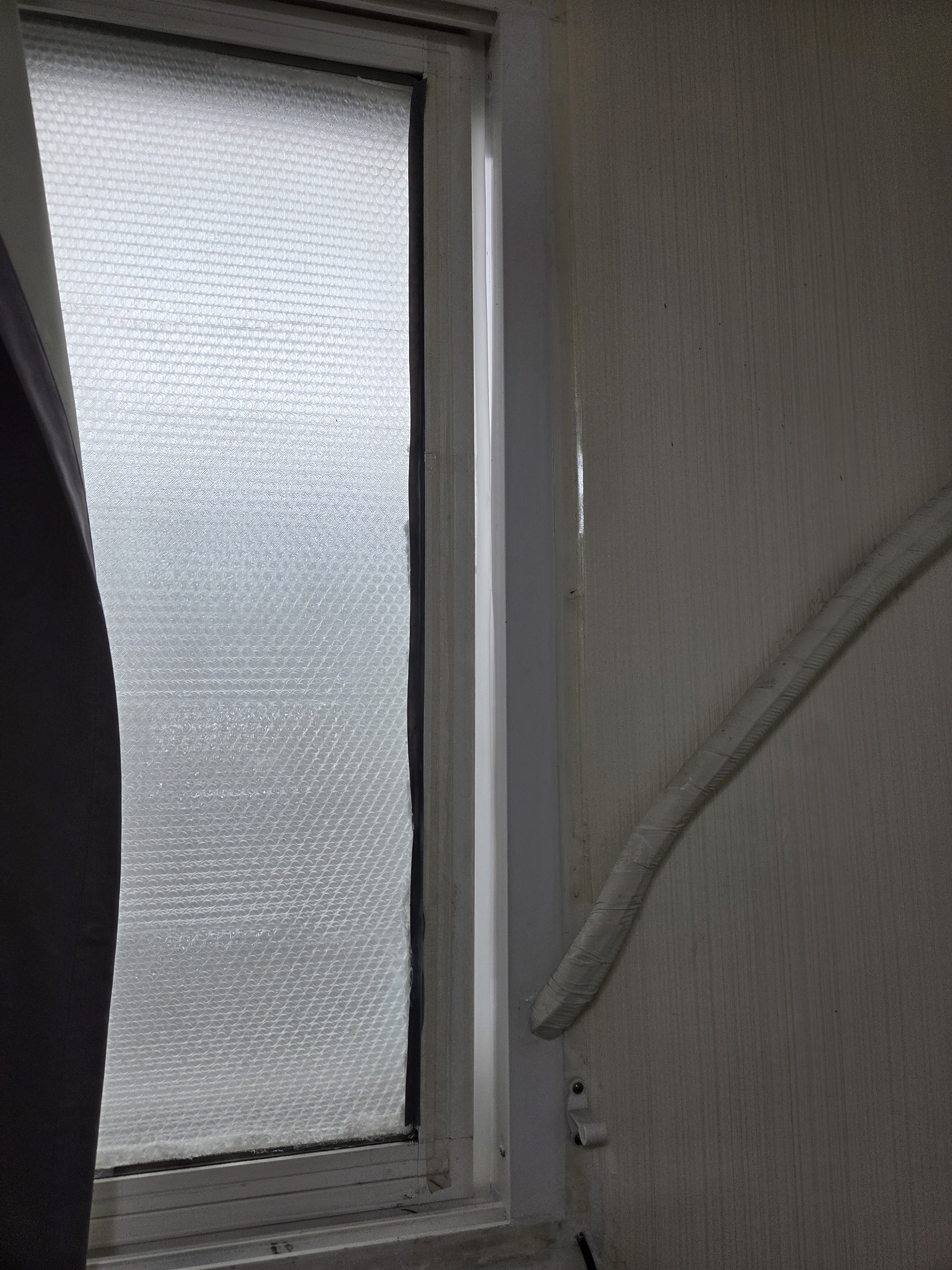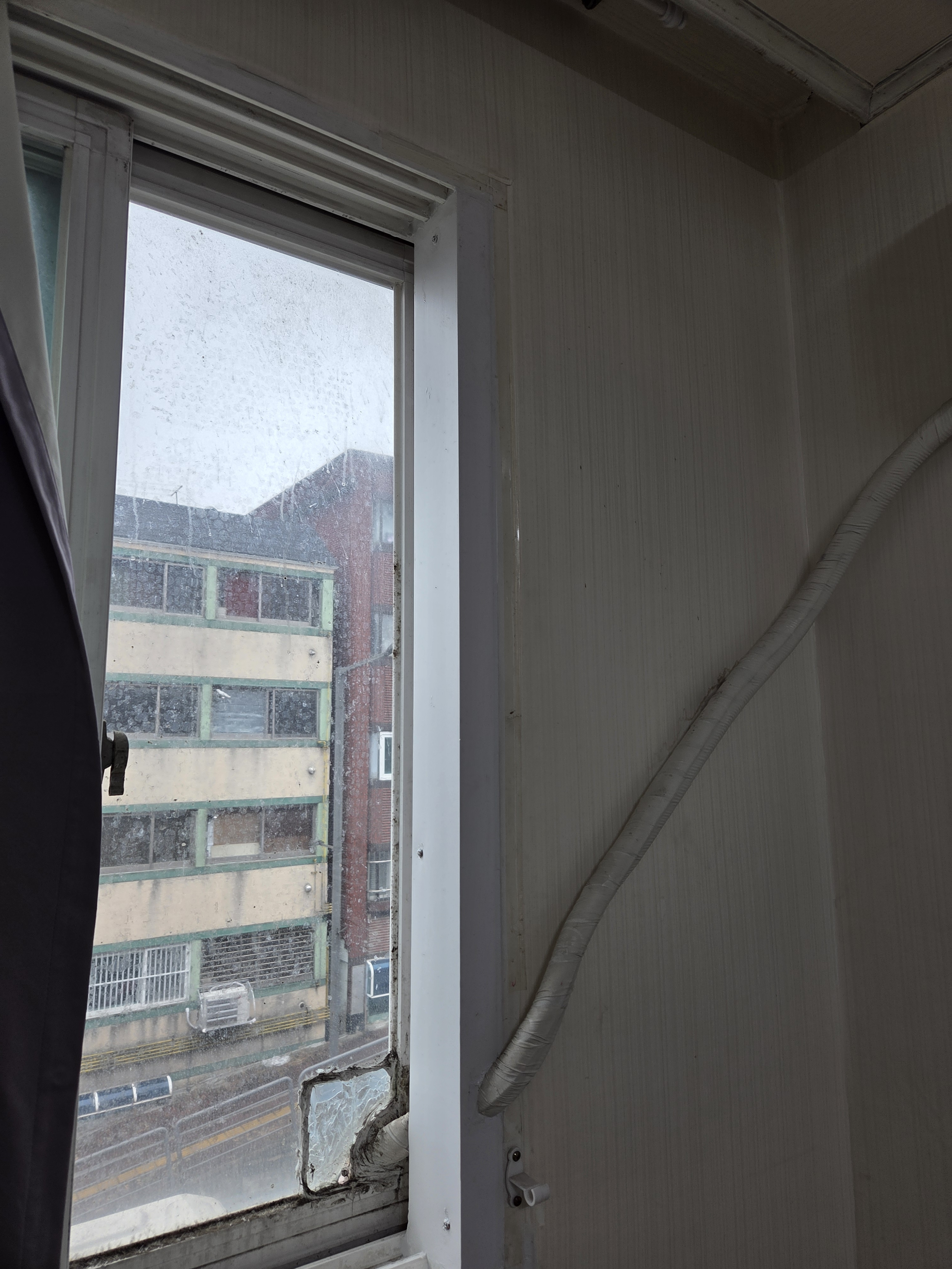 에어컨 파이프때문에 창이 닫히지 않아 막아드렸습니다.