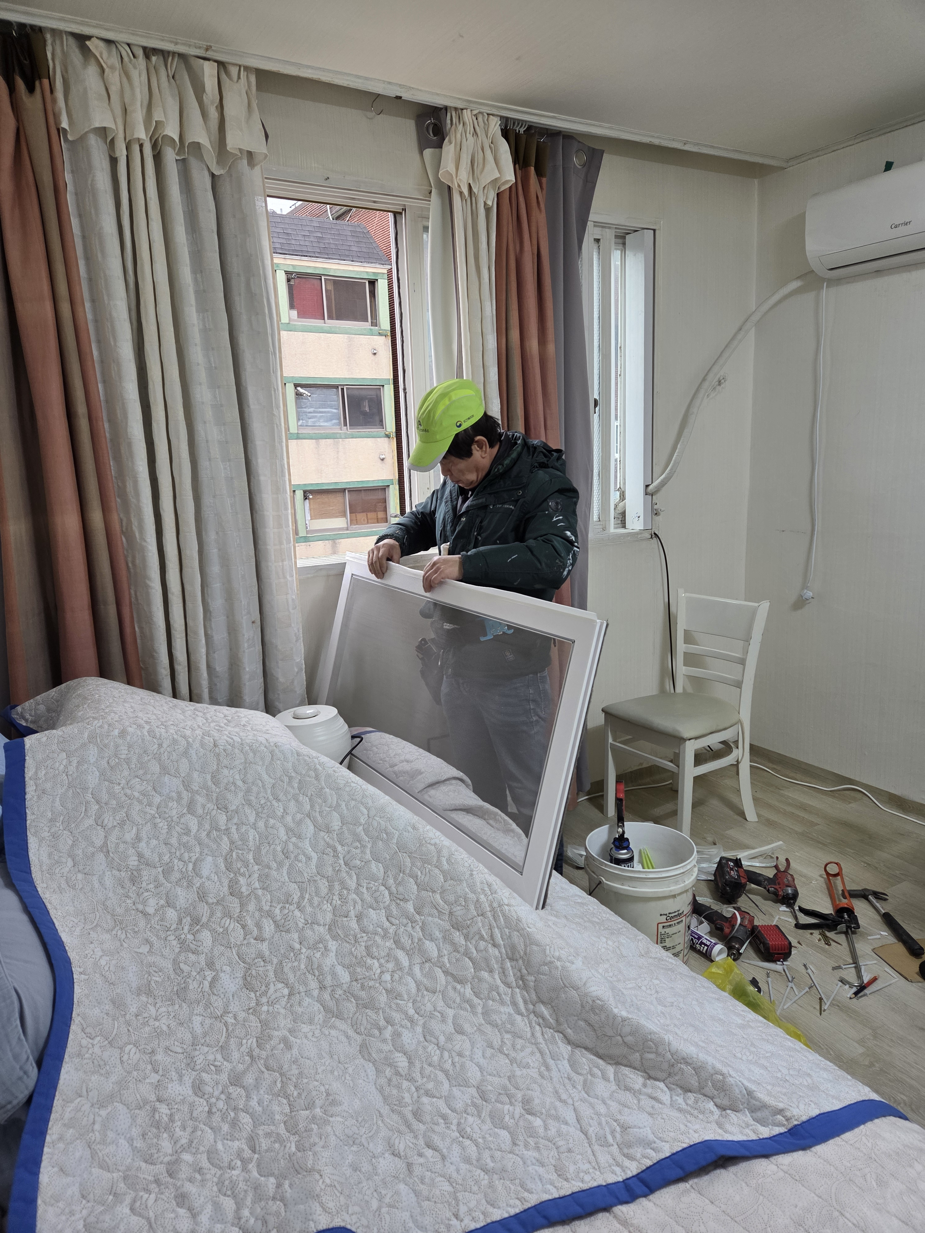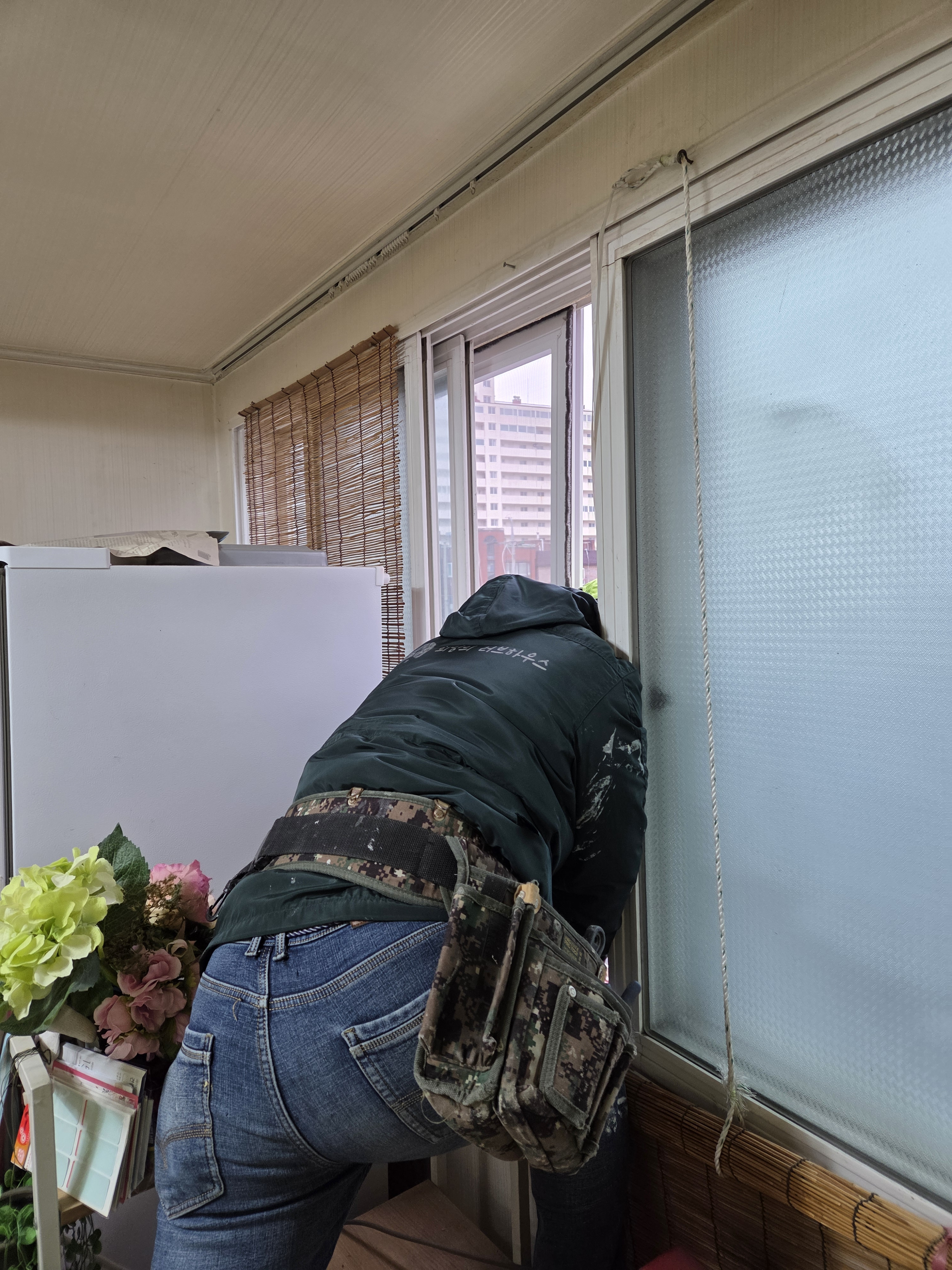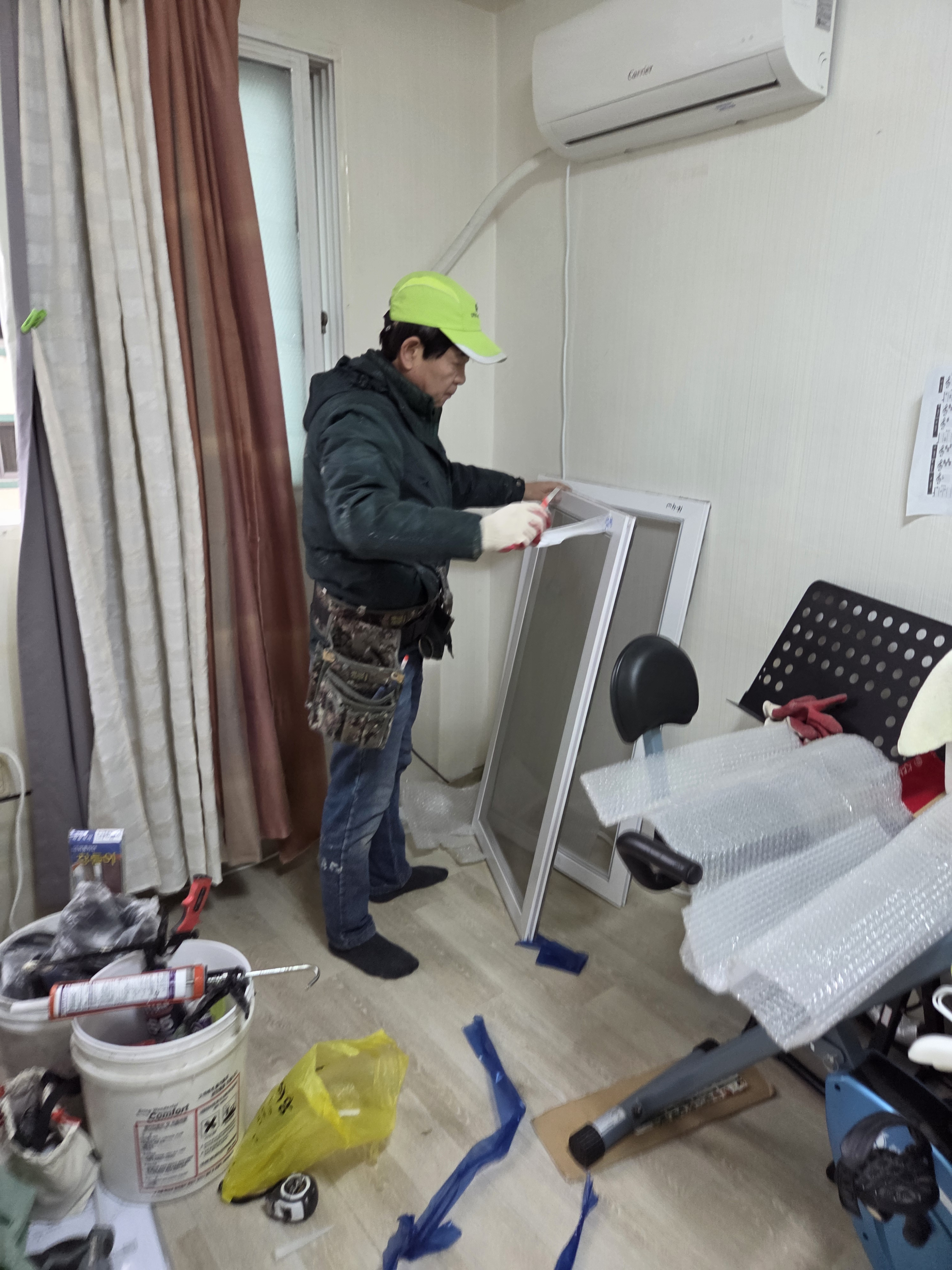 창문에 방풍비닐도 붙여드렸구요.