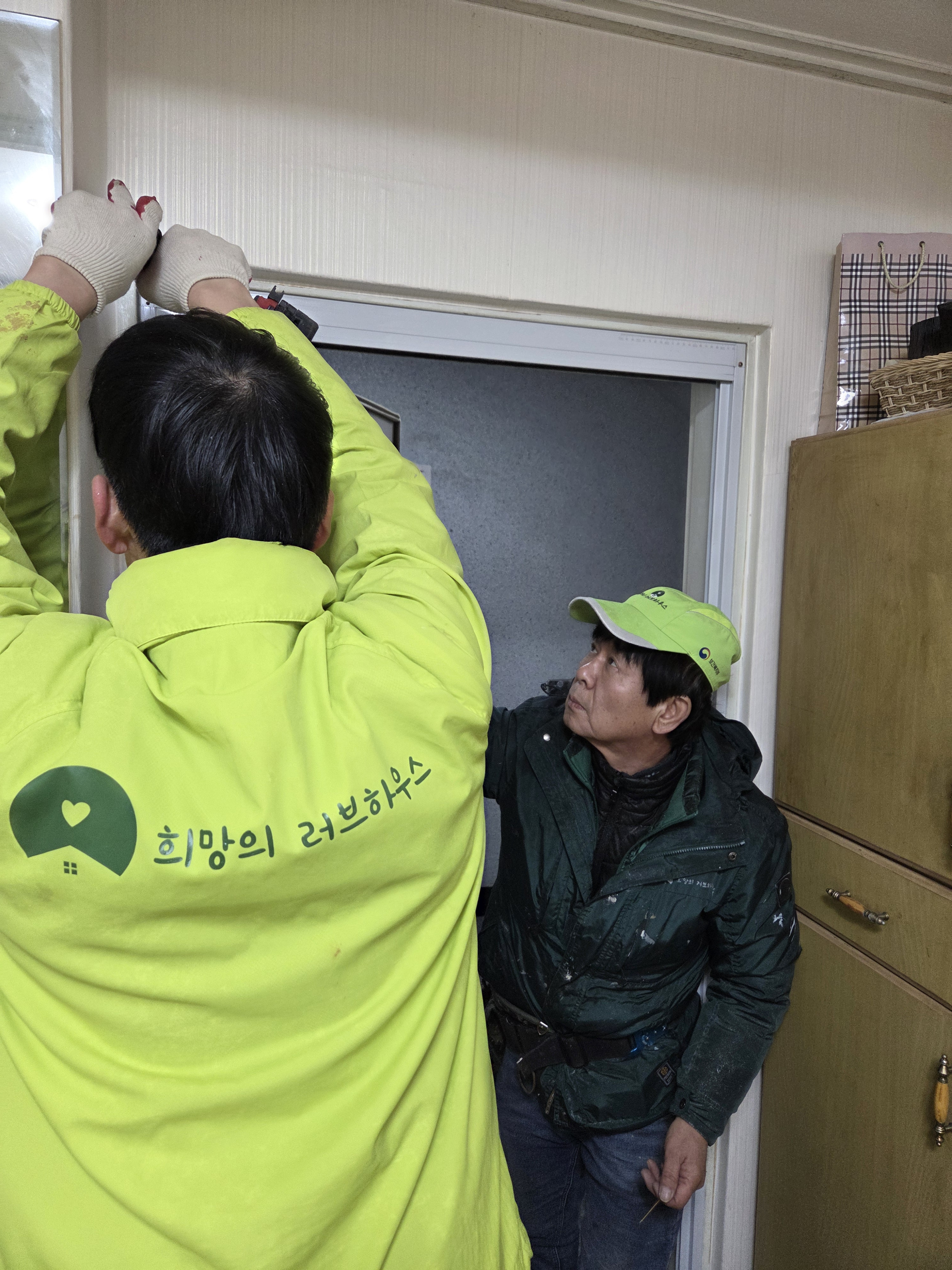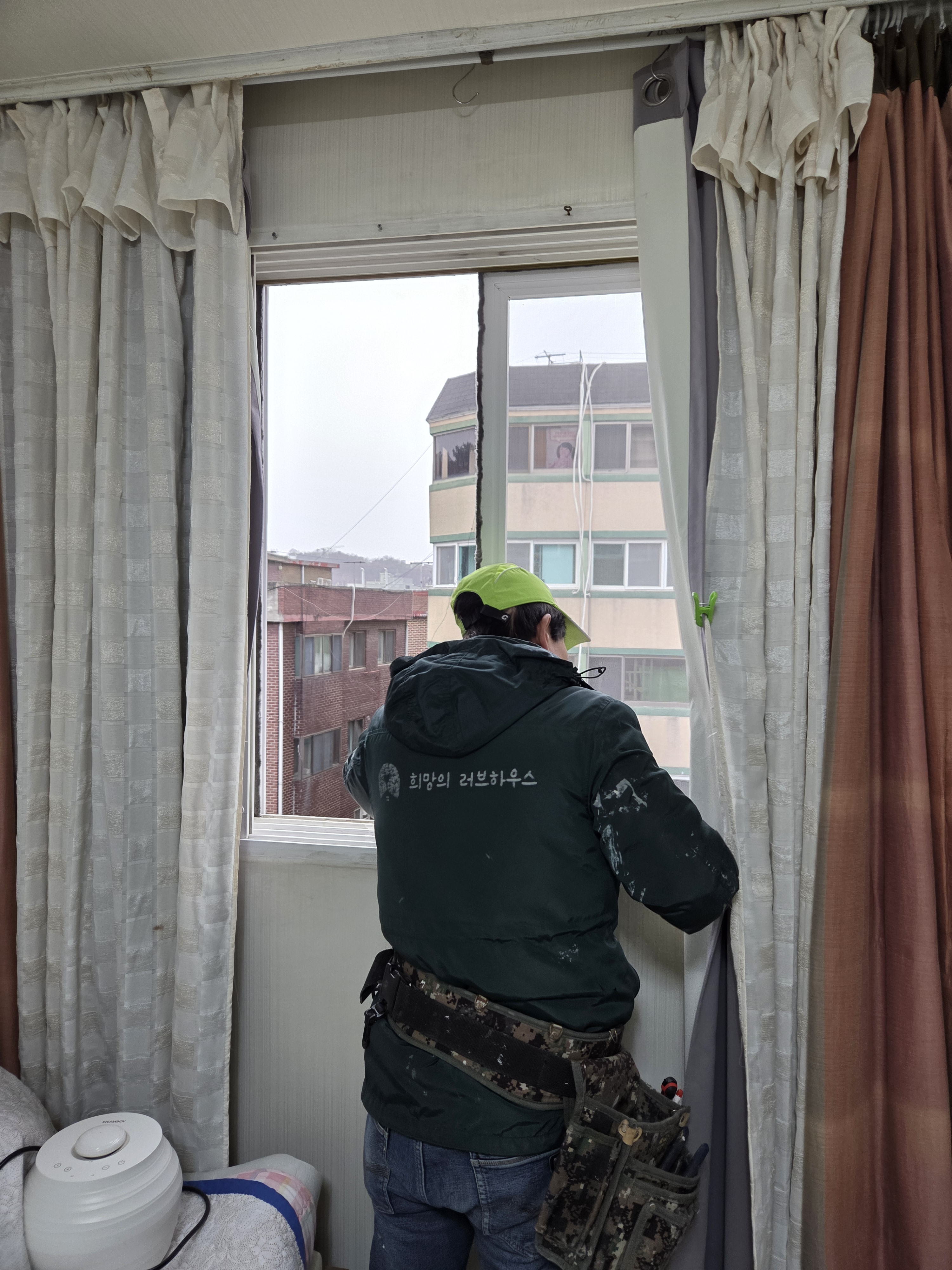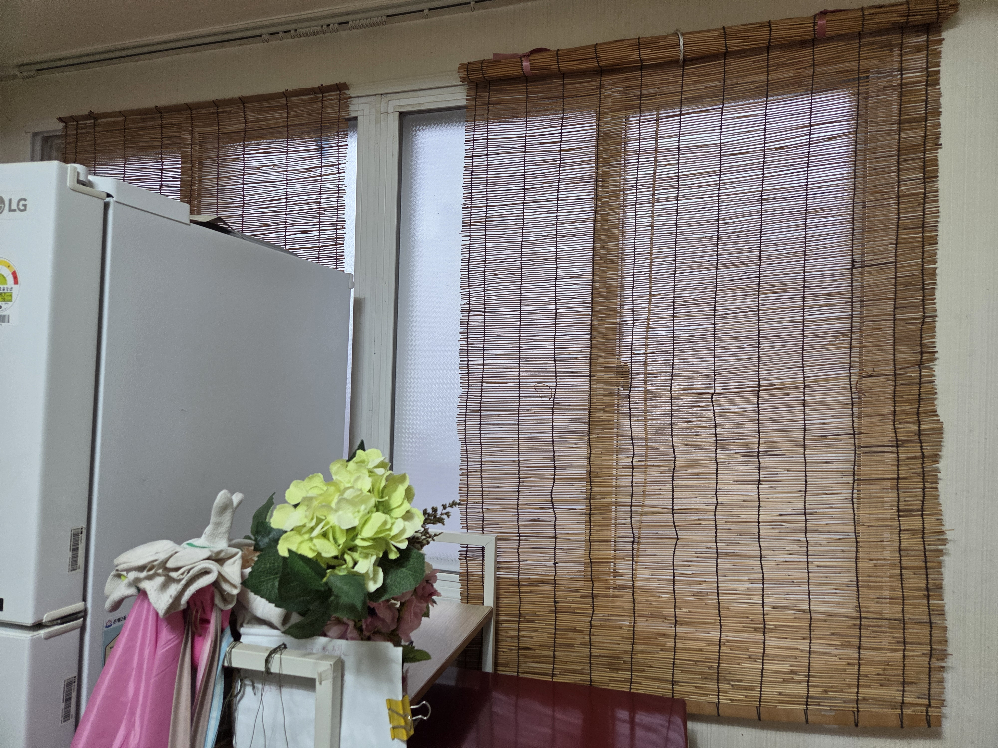 창문에 방풍비닐도 붙여드렸구요.