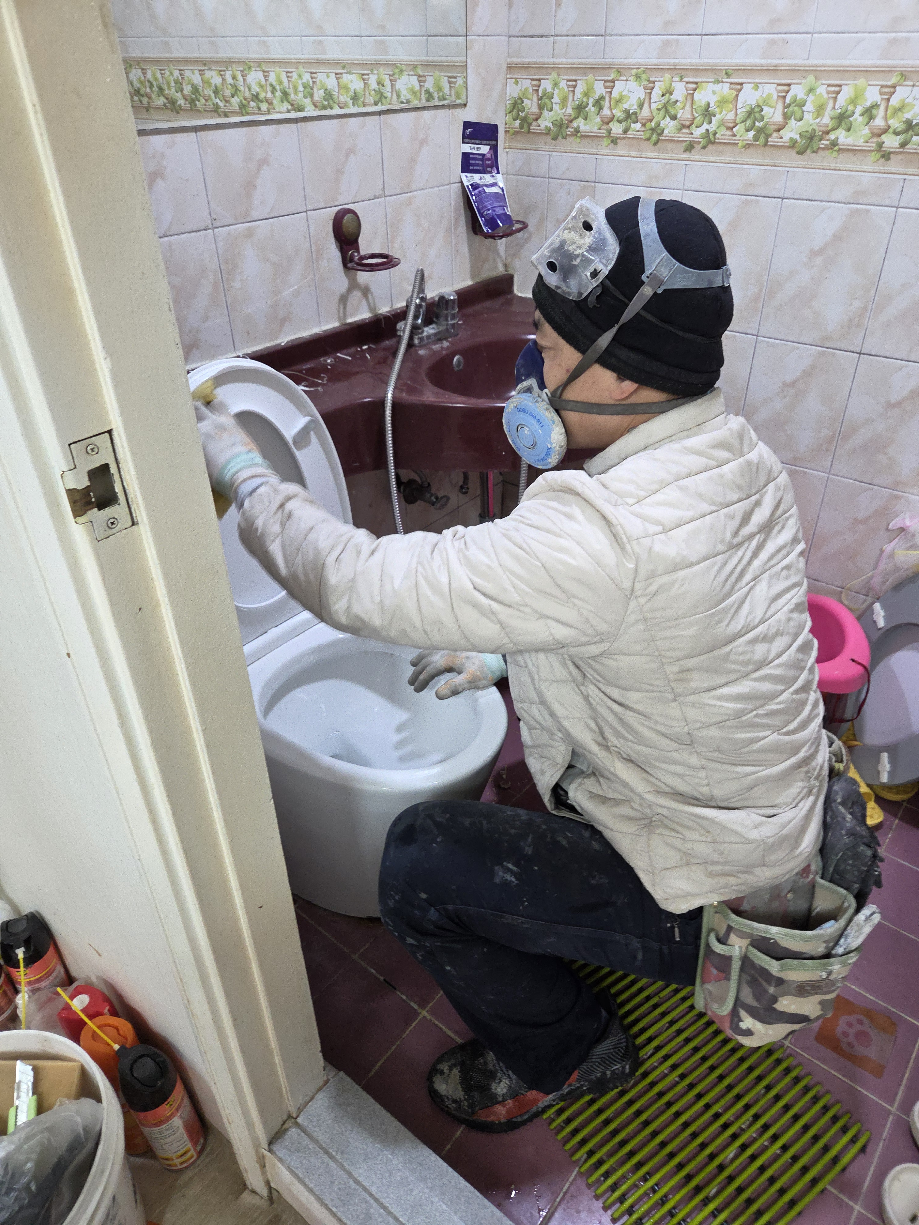 세면대 실리콘 긁어내고 변기철거