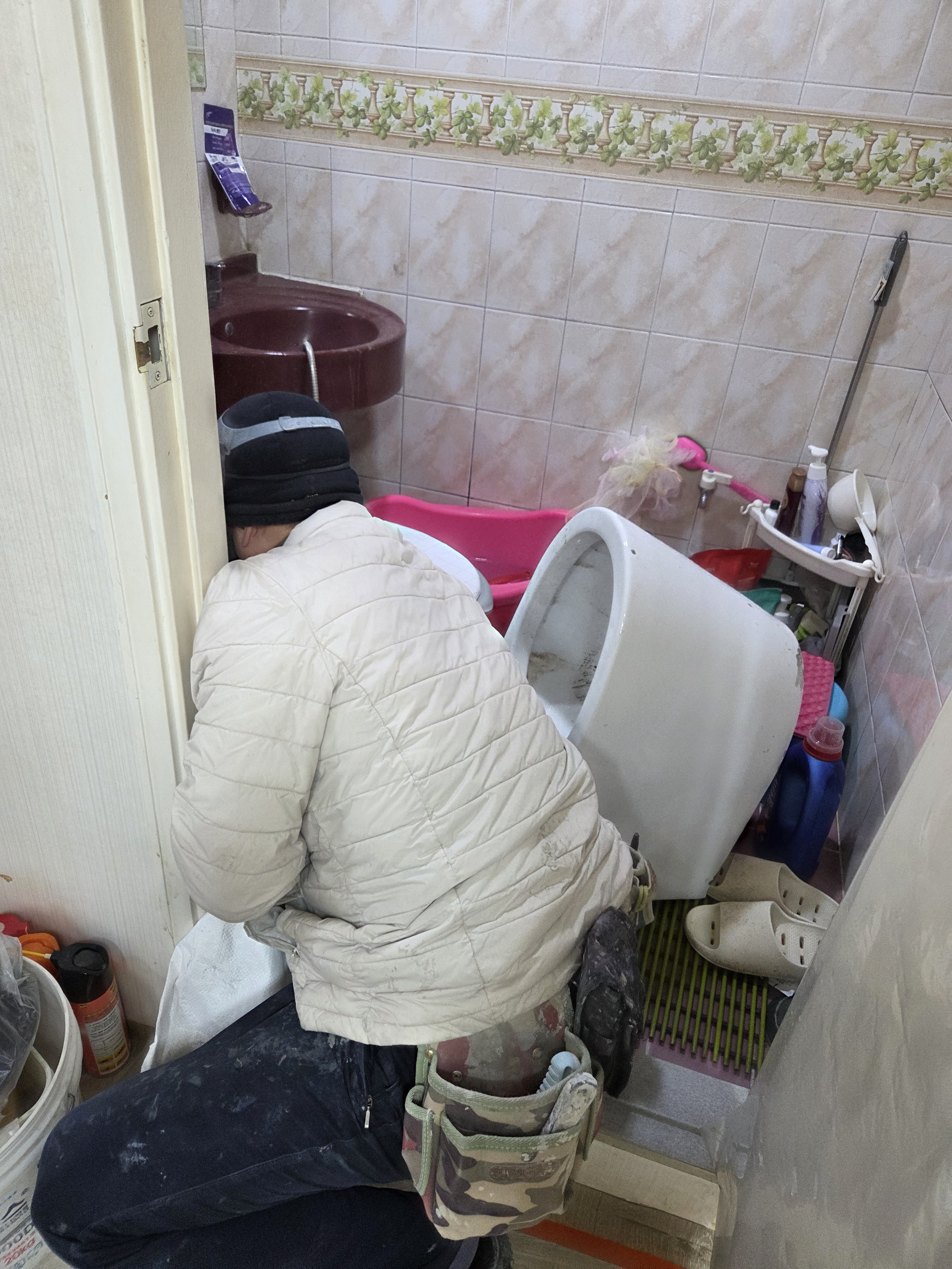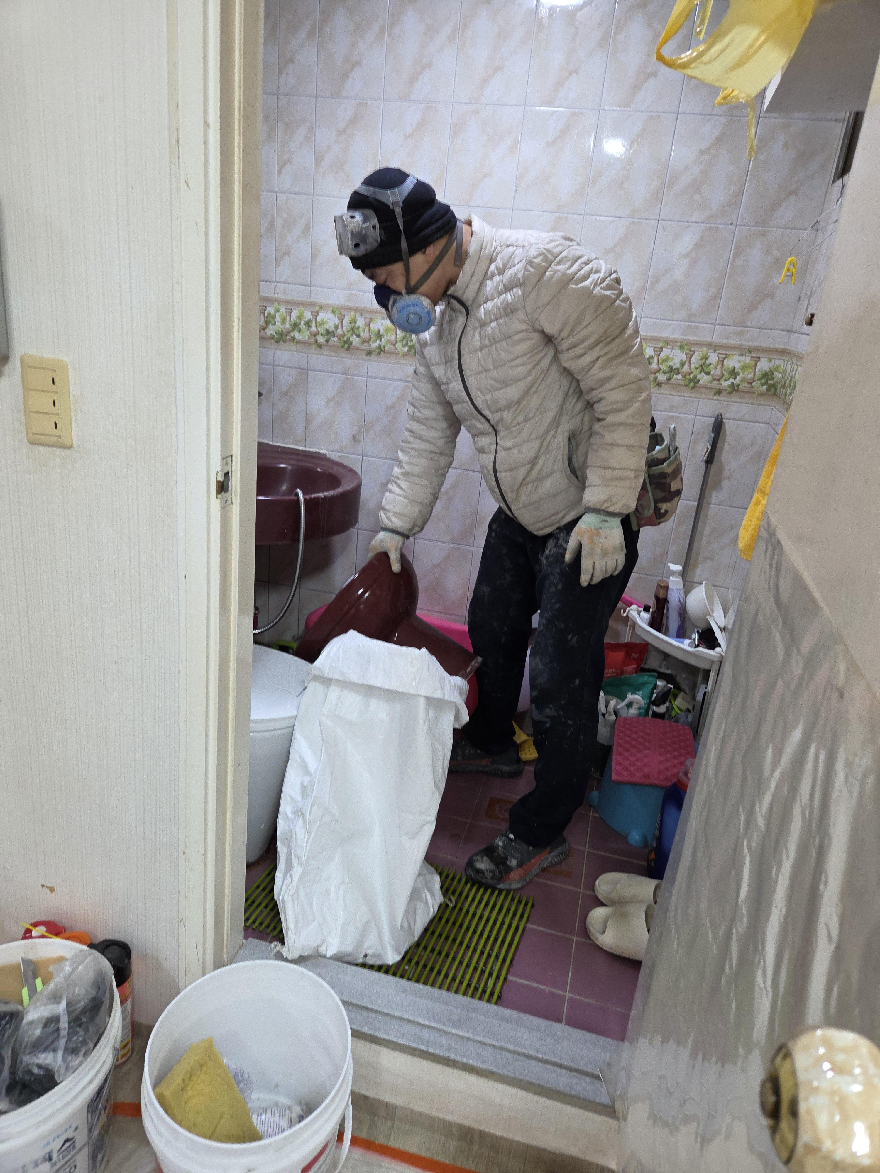철거한 변기 치우고