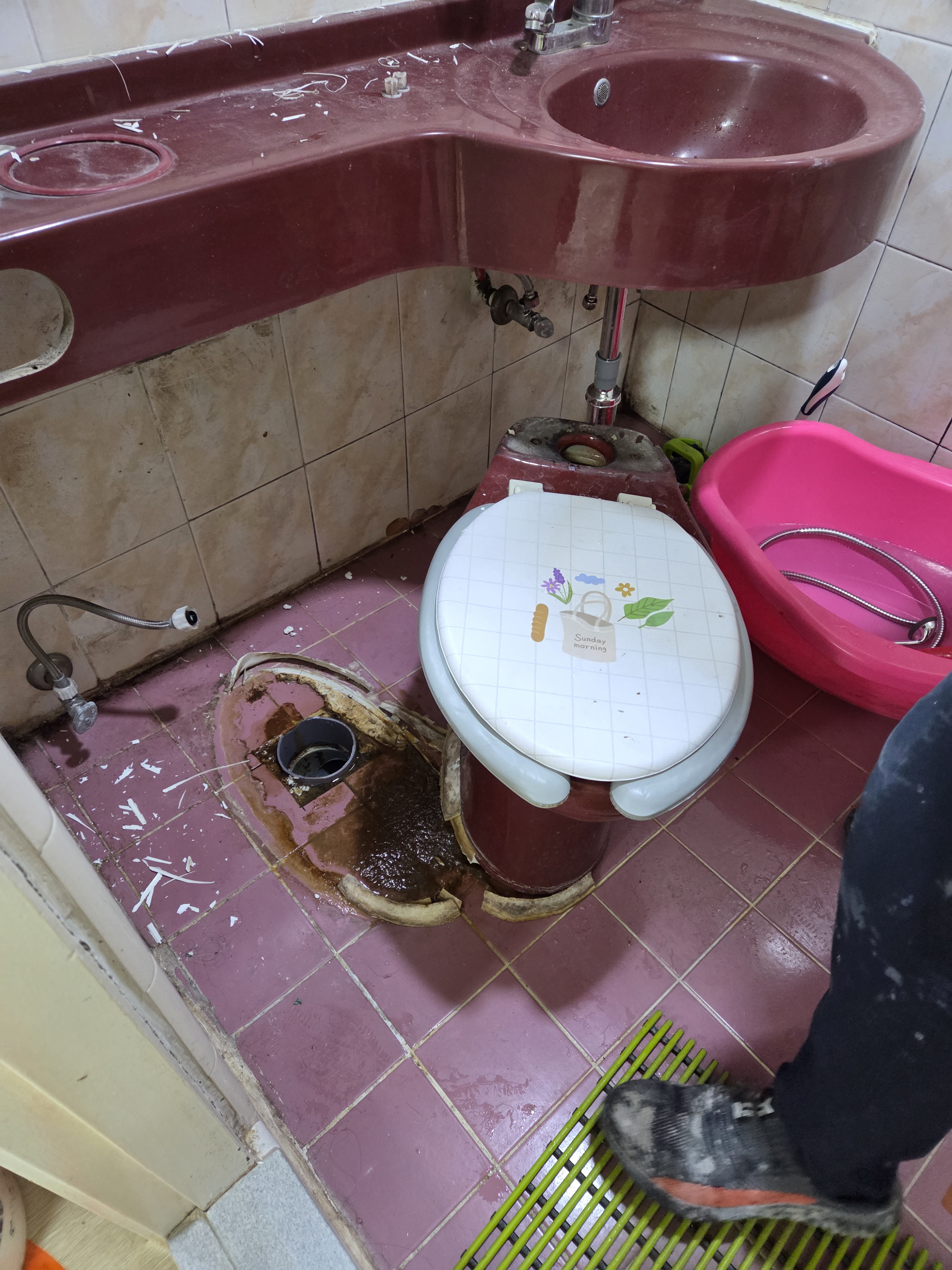 세면대가 일체형이라 변기 철거가 안되서
