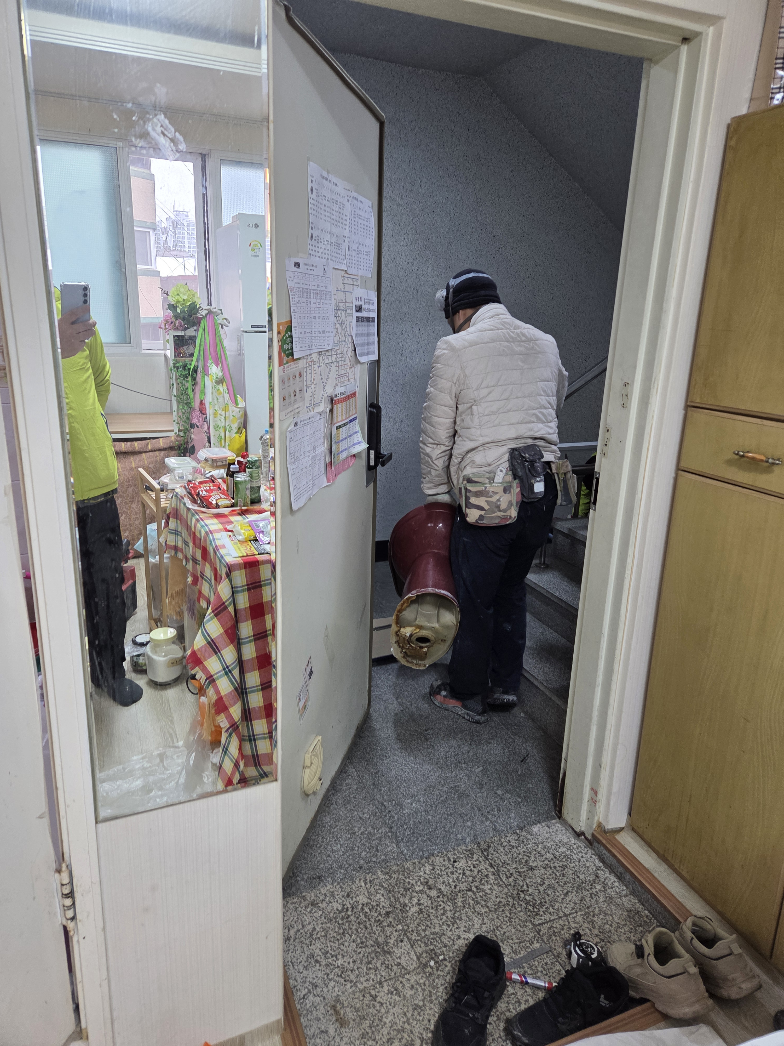 현관은 롤방충망을 시공할 준비를 하고