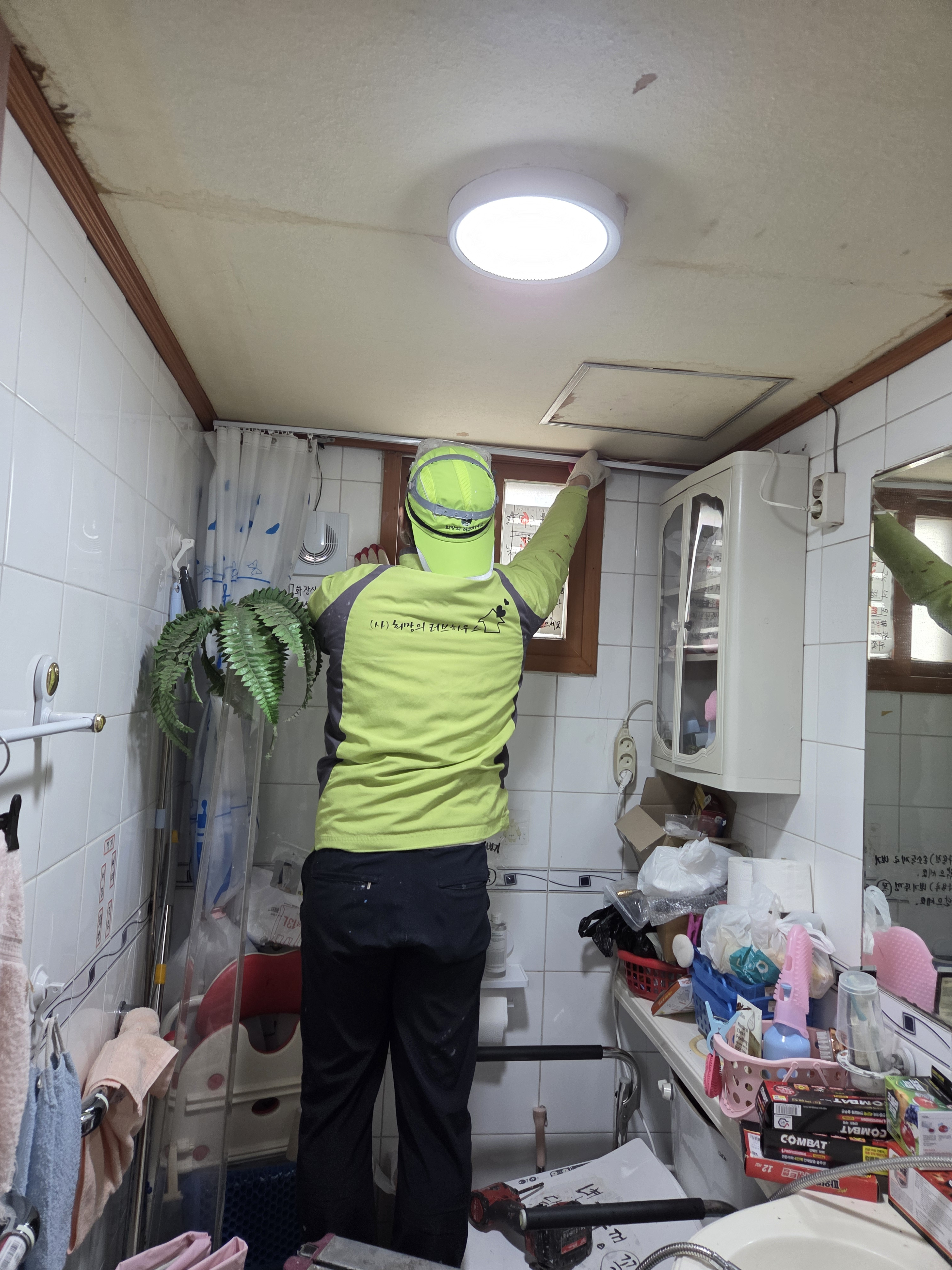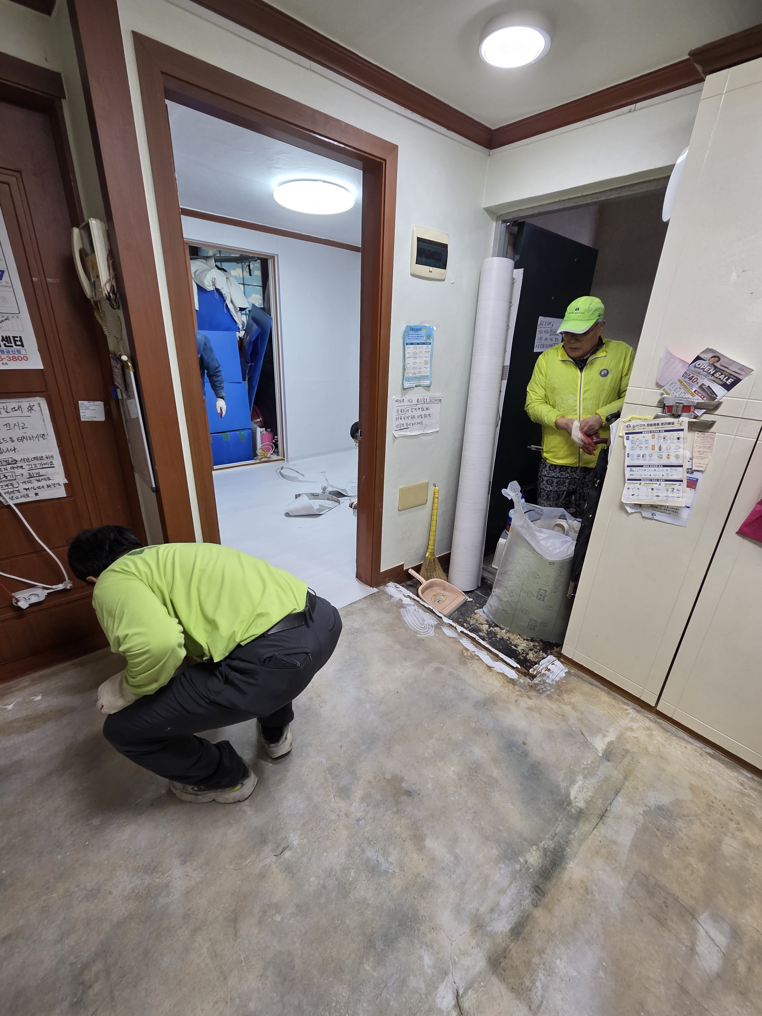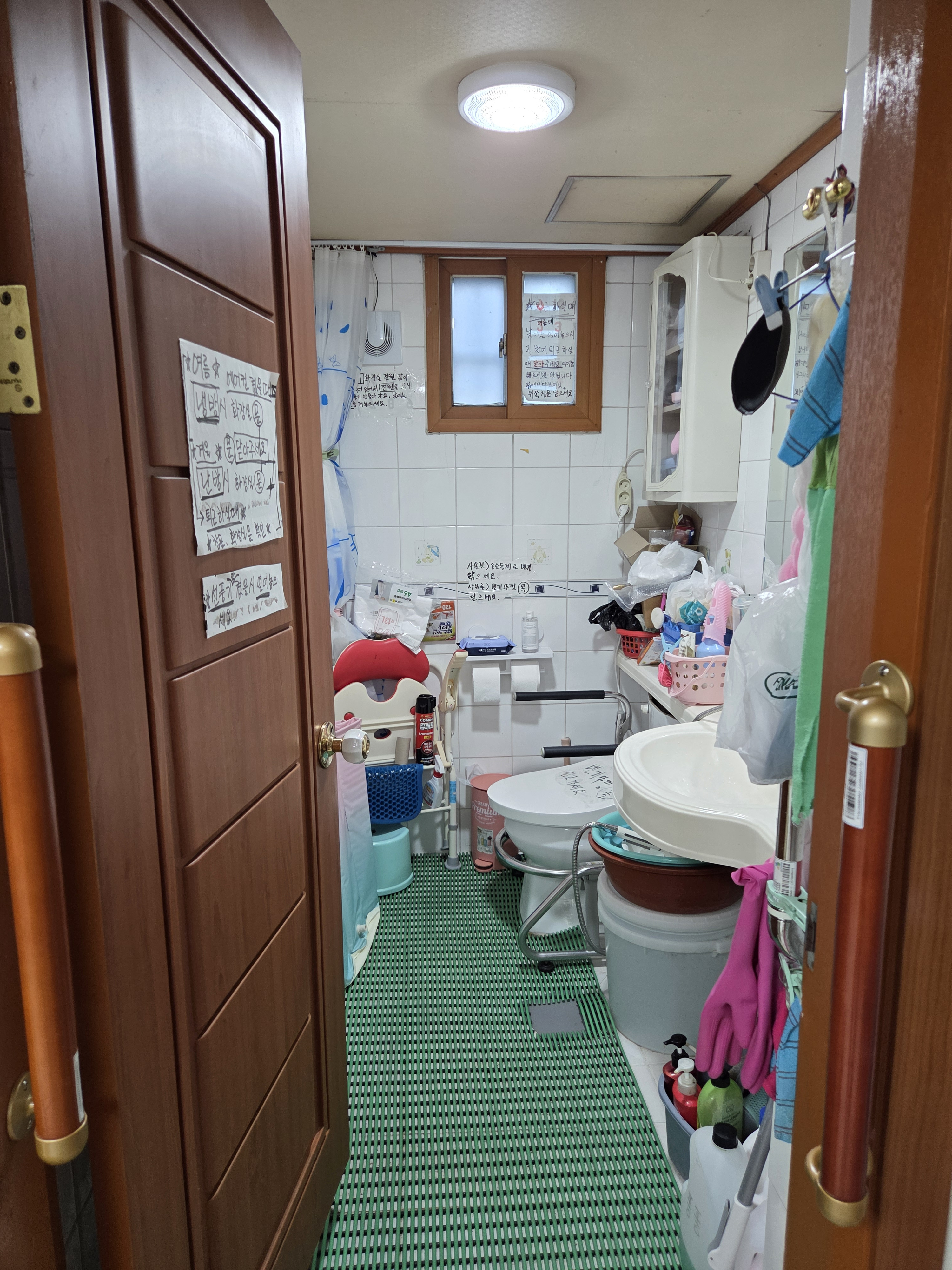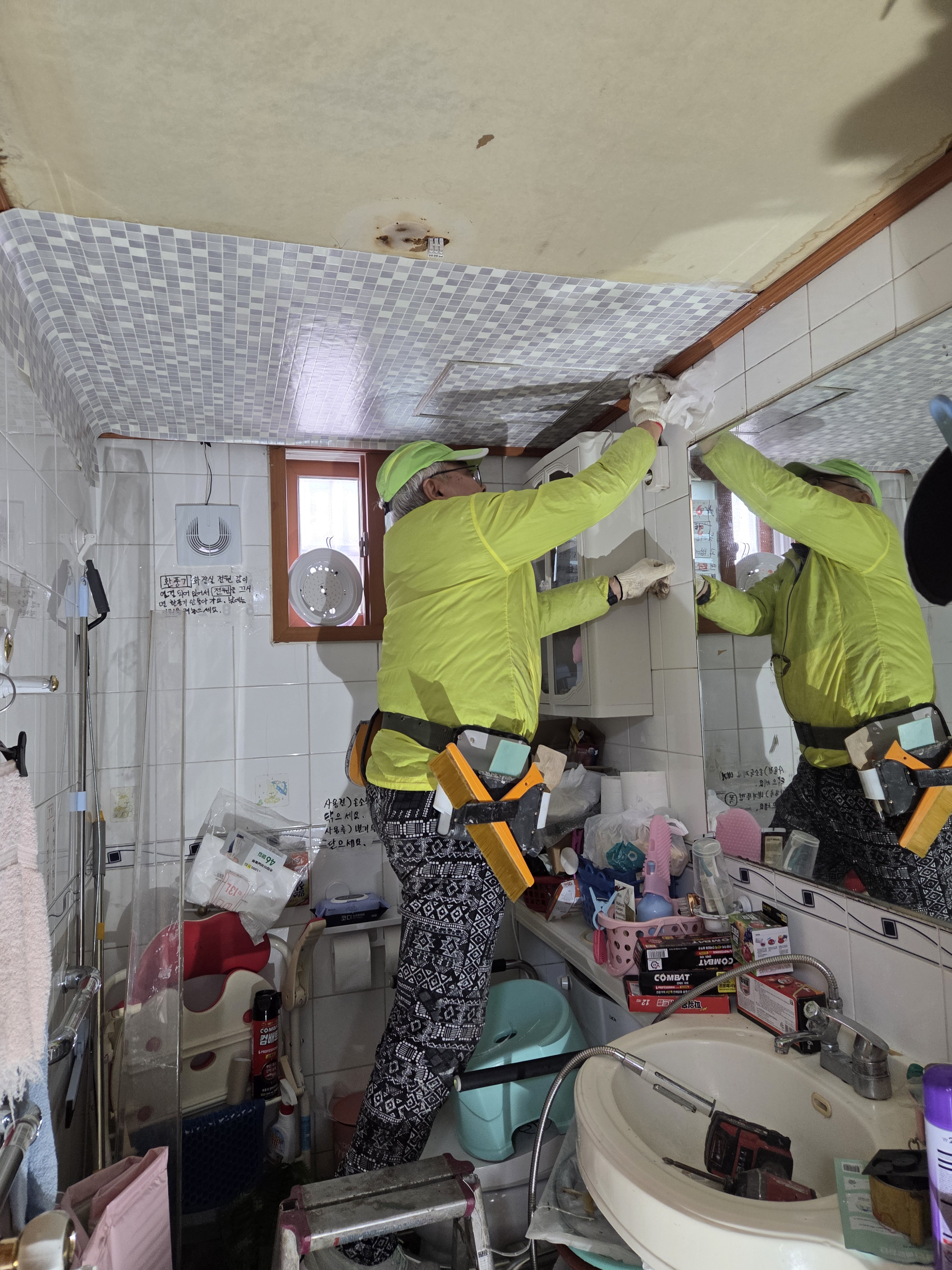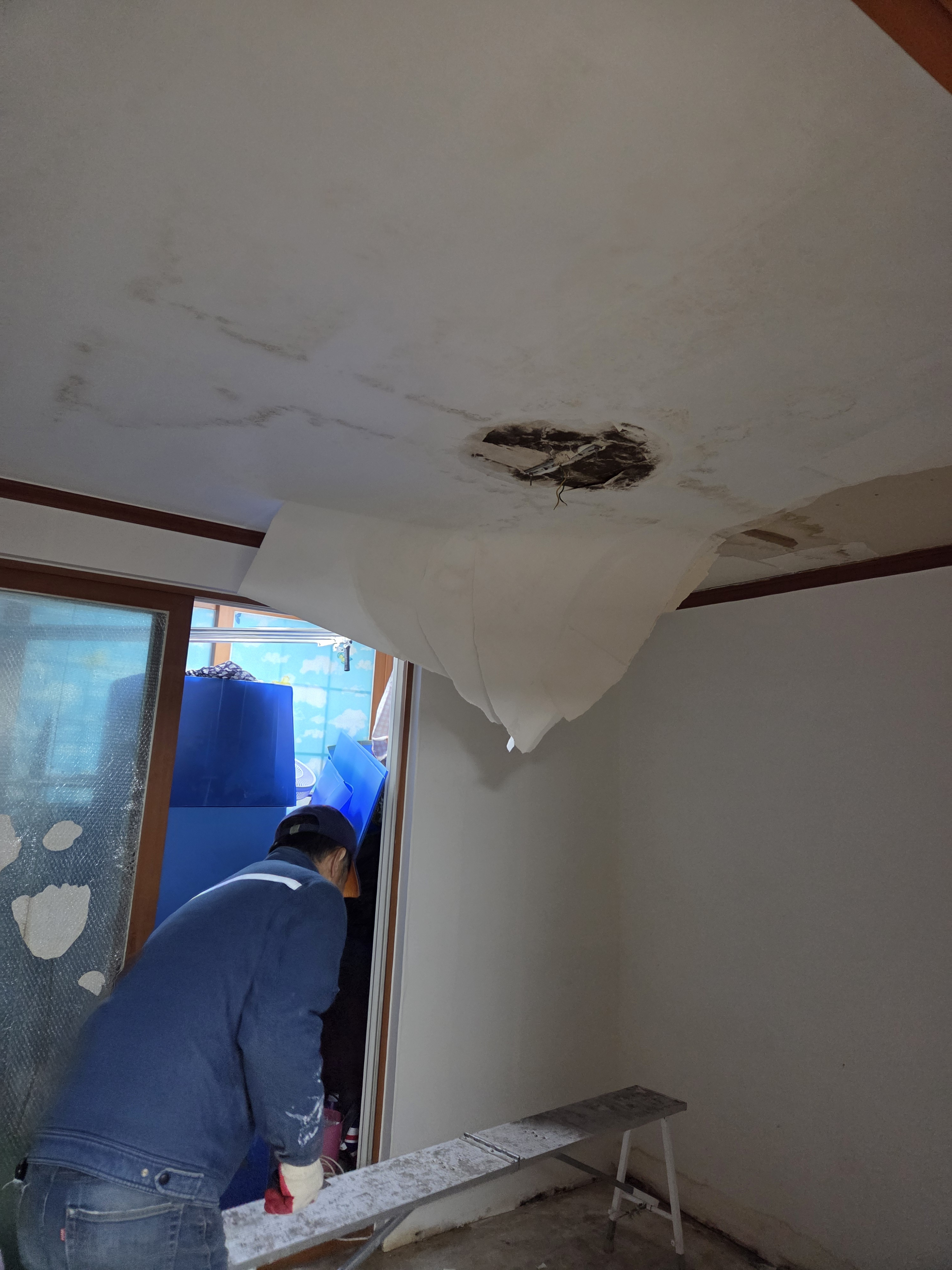 할머니가 누워계시는 방은 누수가 없어서 누수가 난 방 도배/장판과 거실 장판 작업. 그리고 화장실 천정 도배를 진행했습니다.