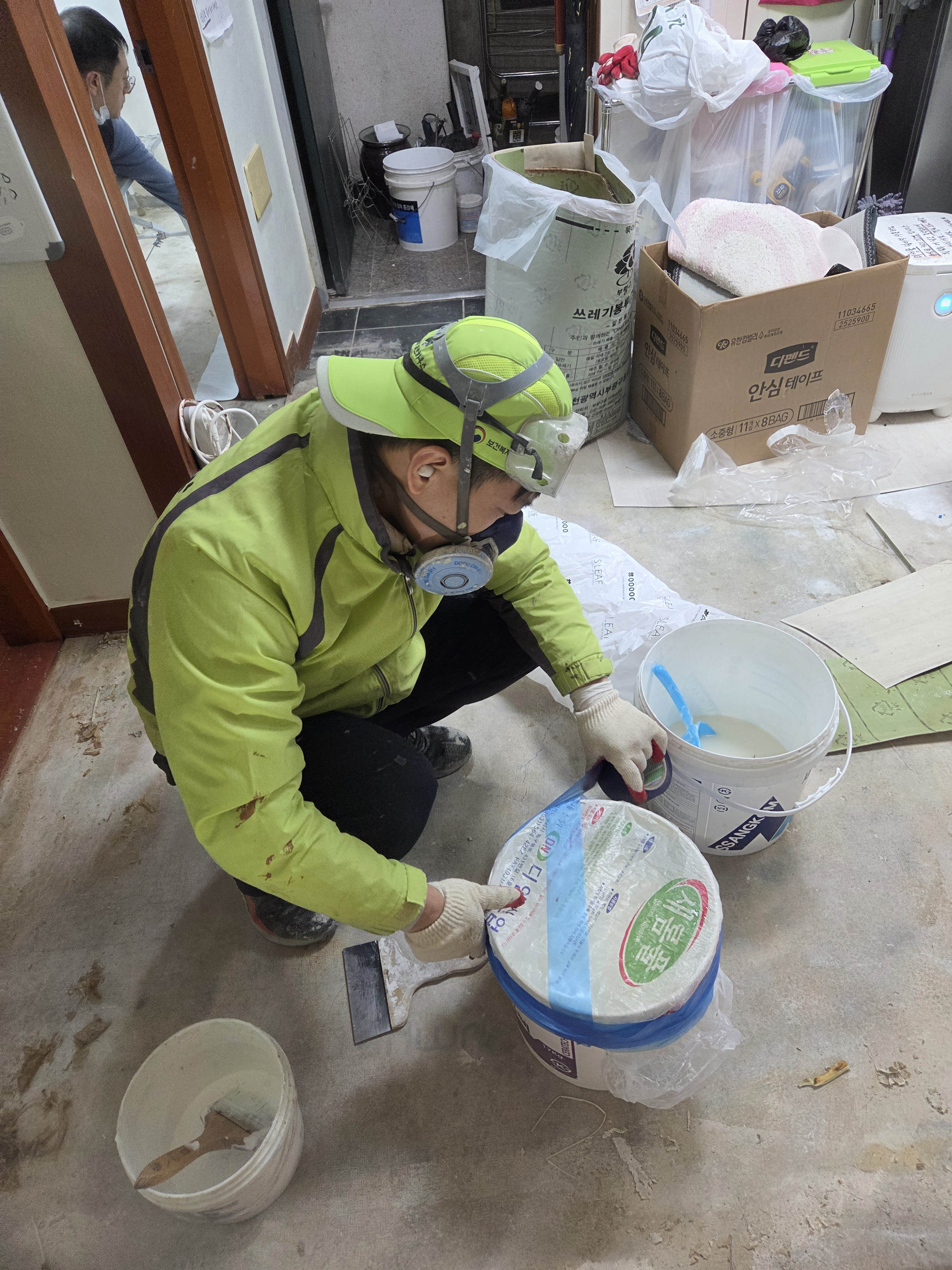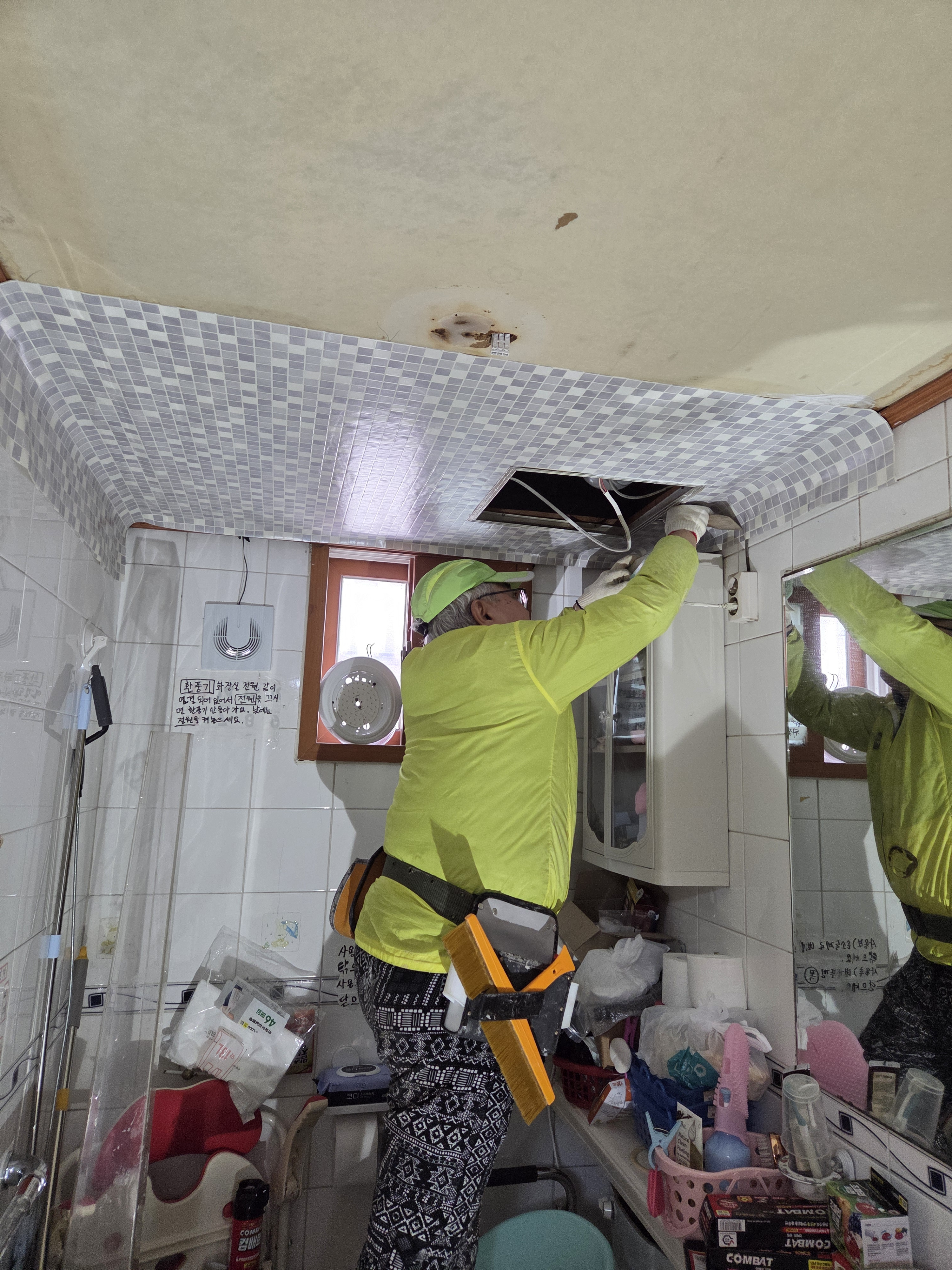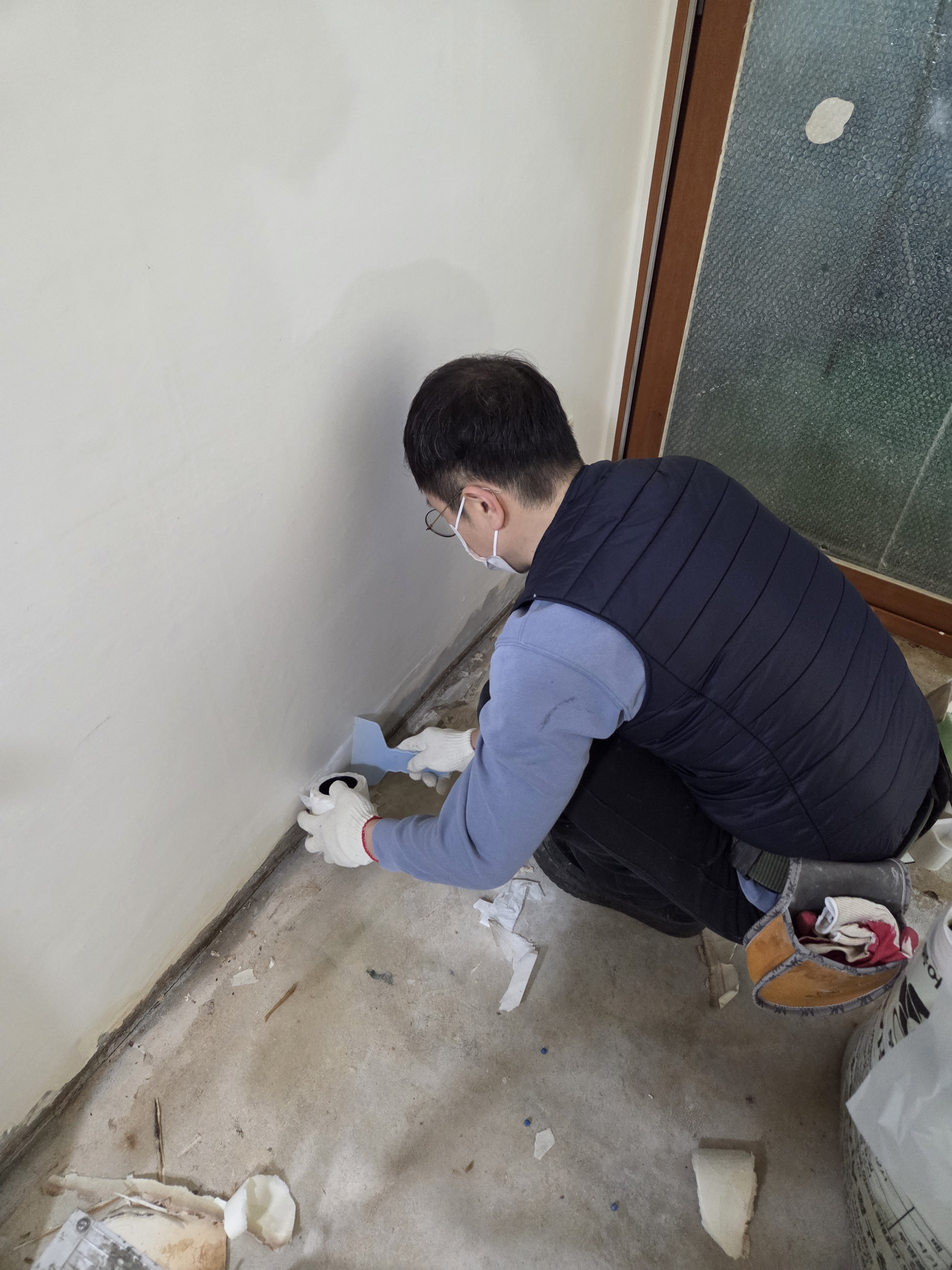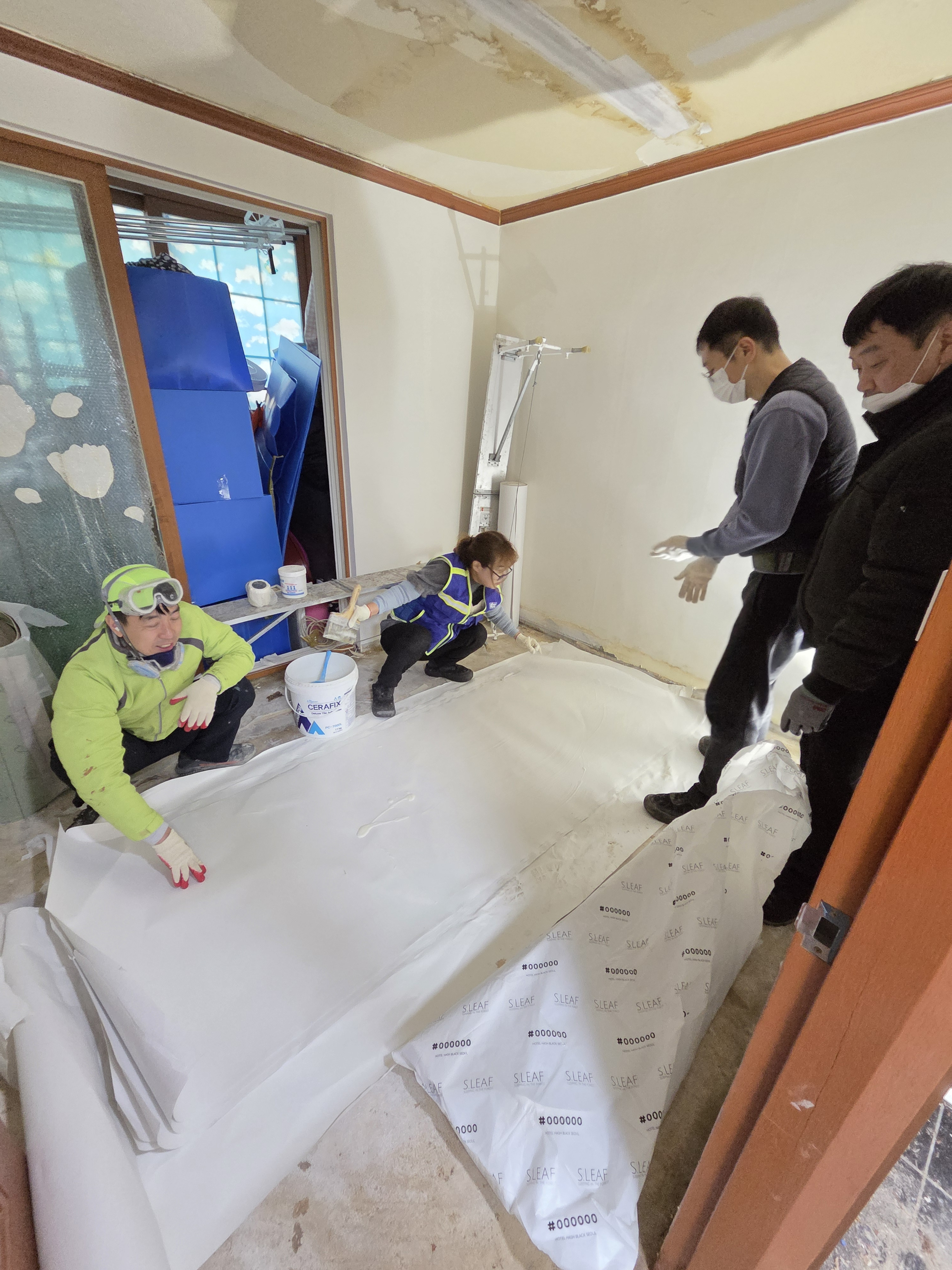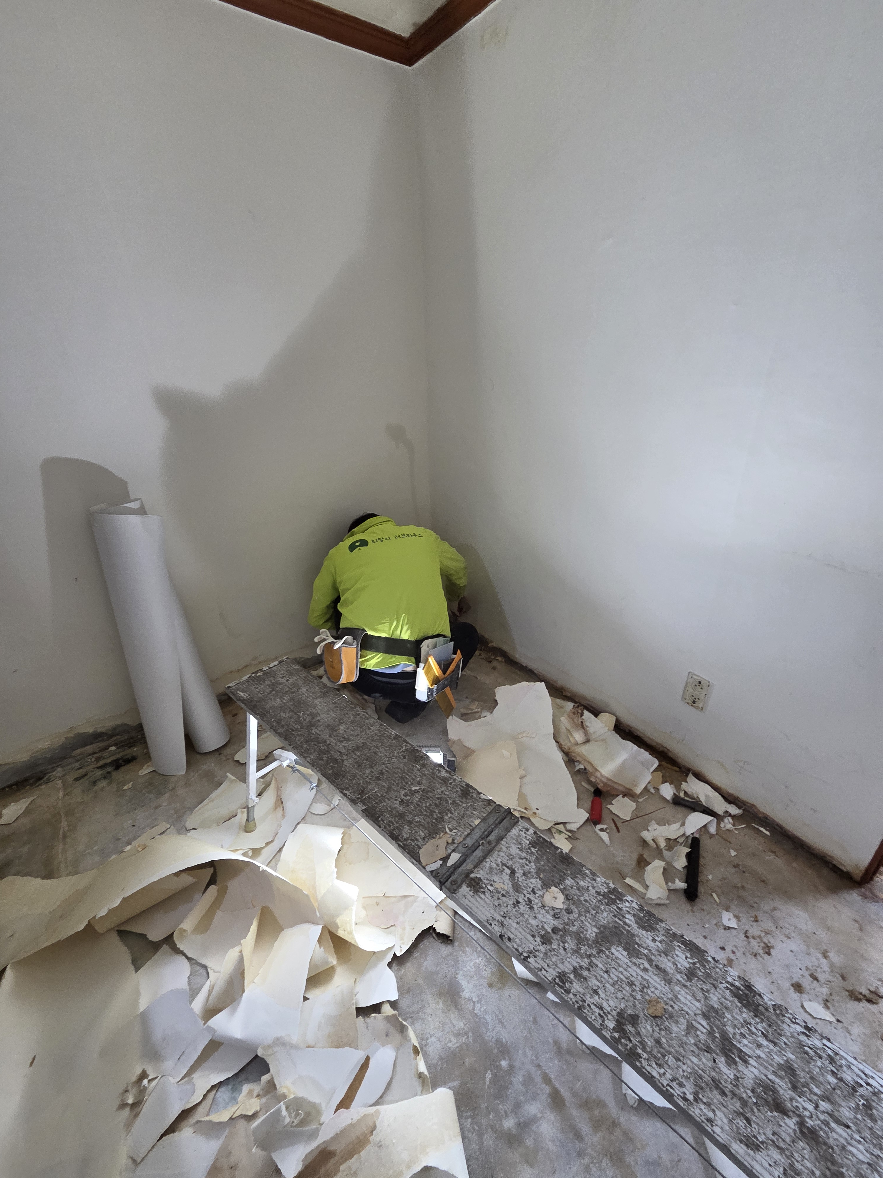 할머니가 누워계시는 방은 누수가 없어서 누수가 난 방 도배/장판과 거실 장판 작업. 그리고 화장실 천정 도배를 진행했습니다.