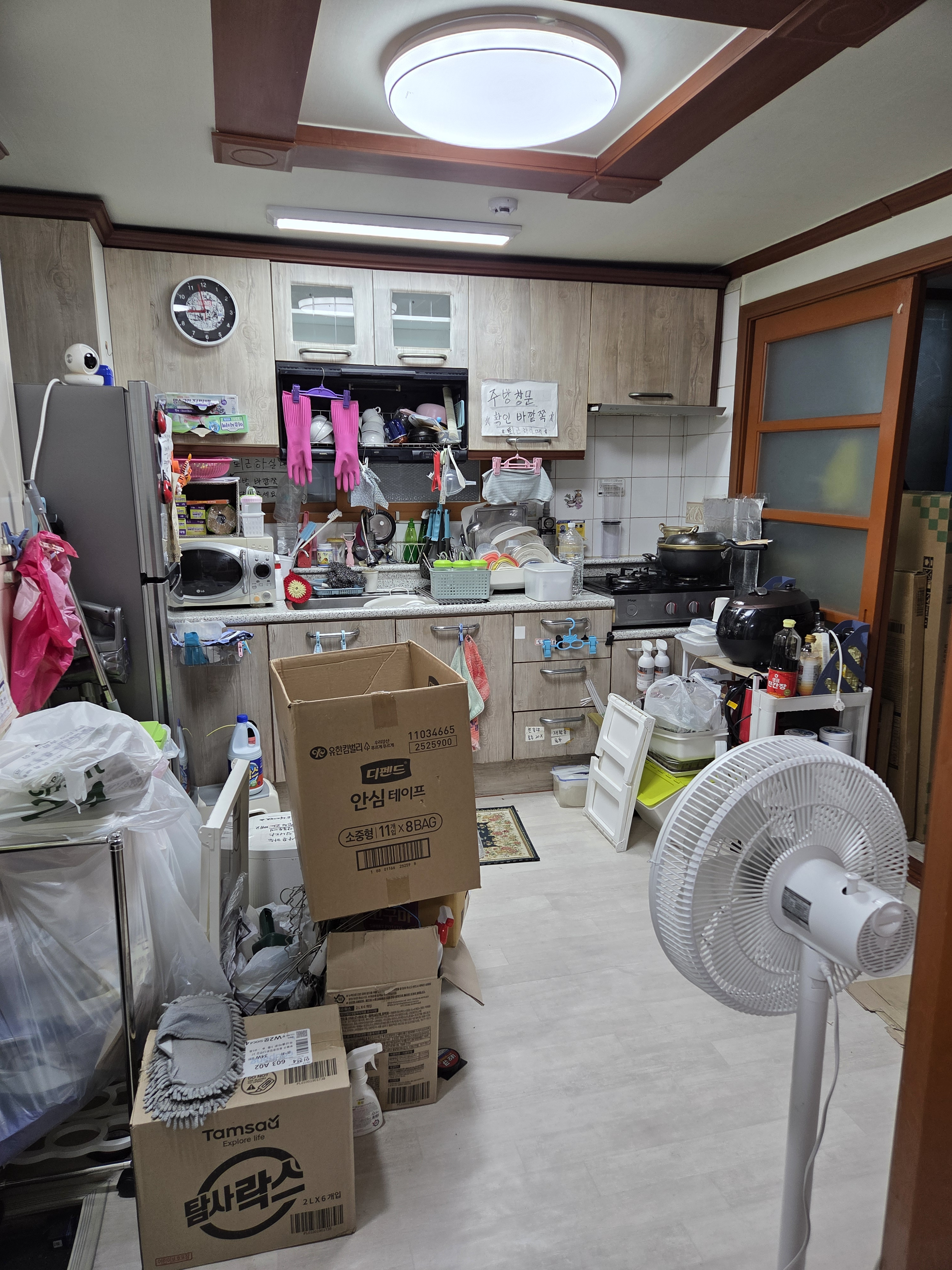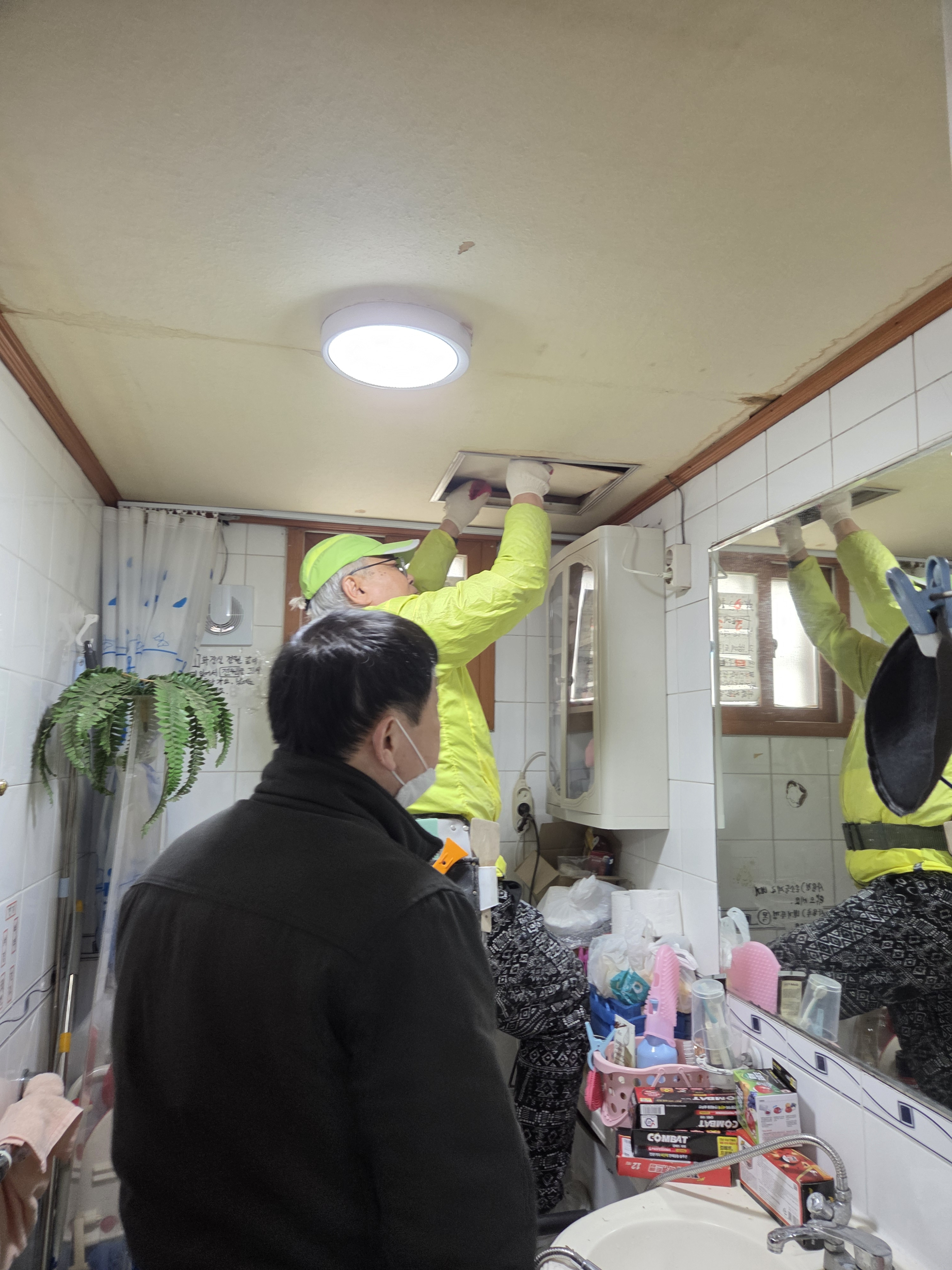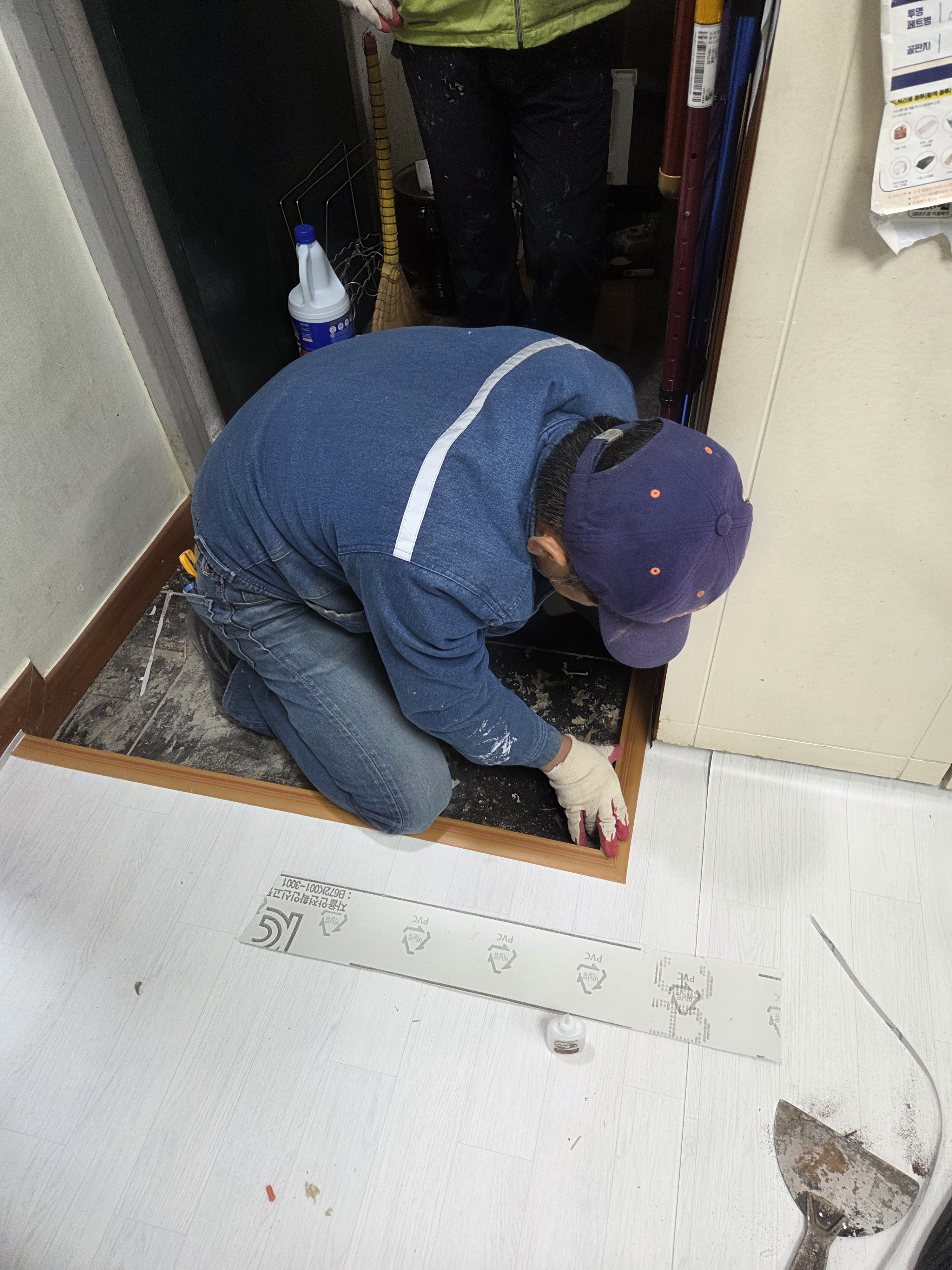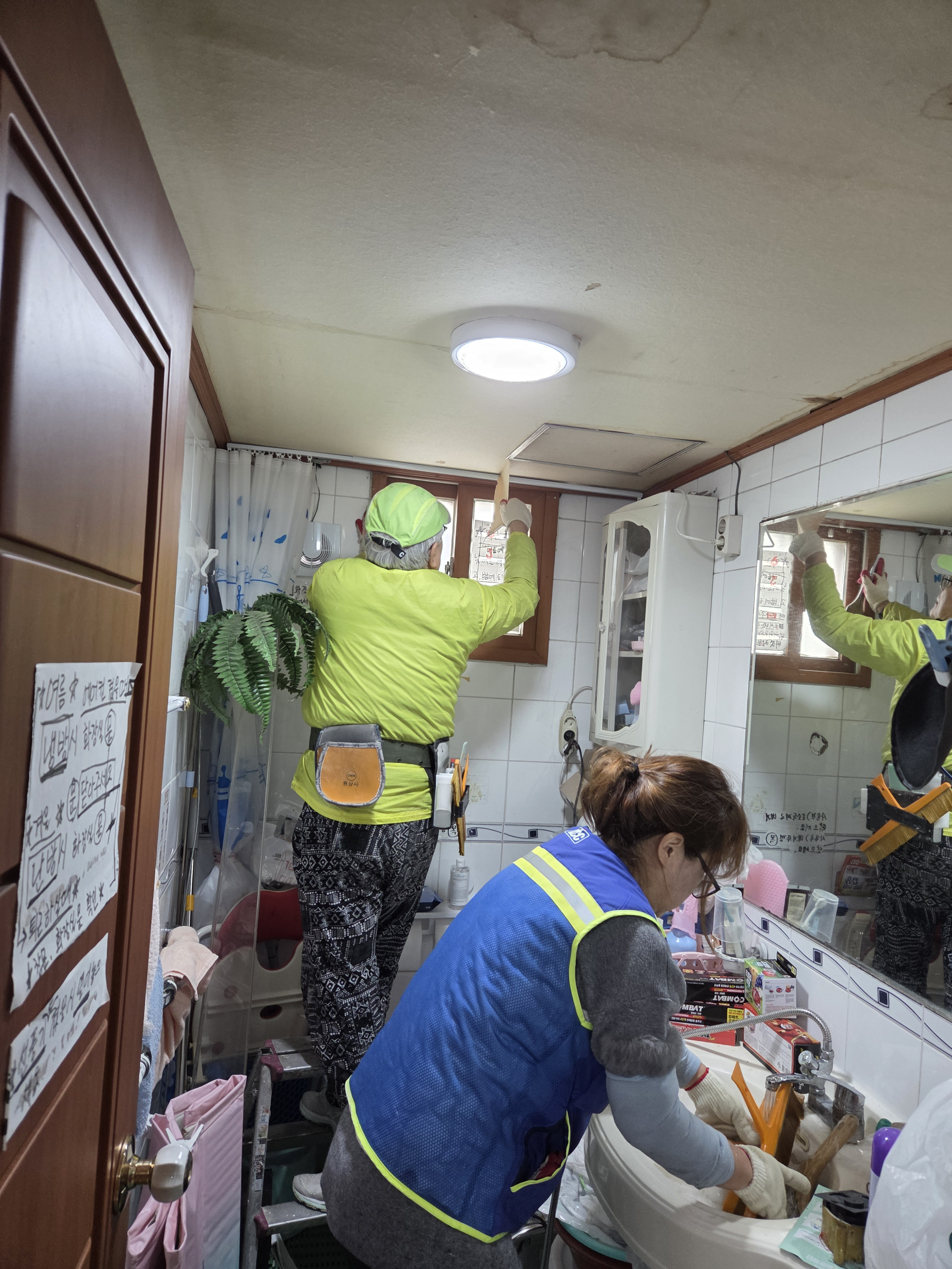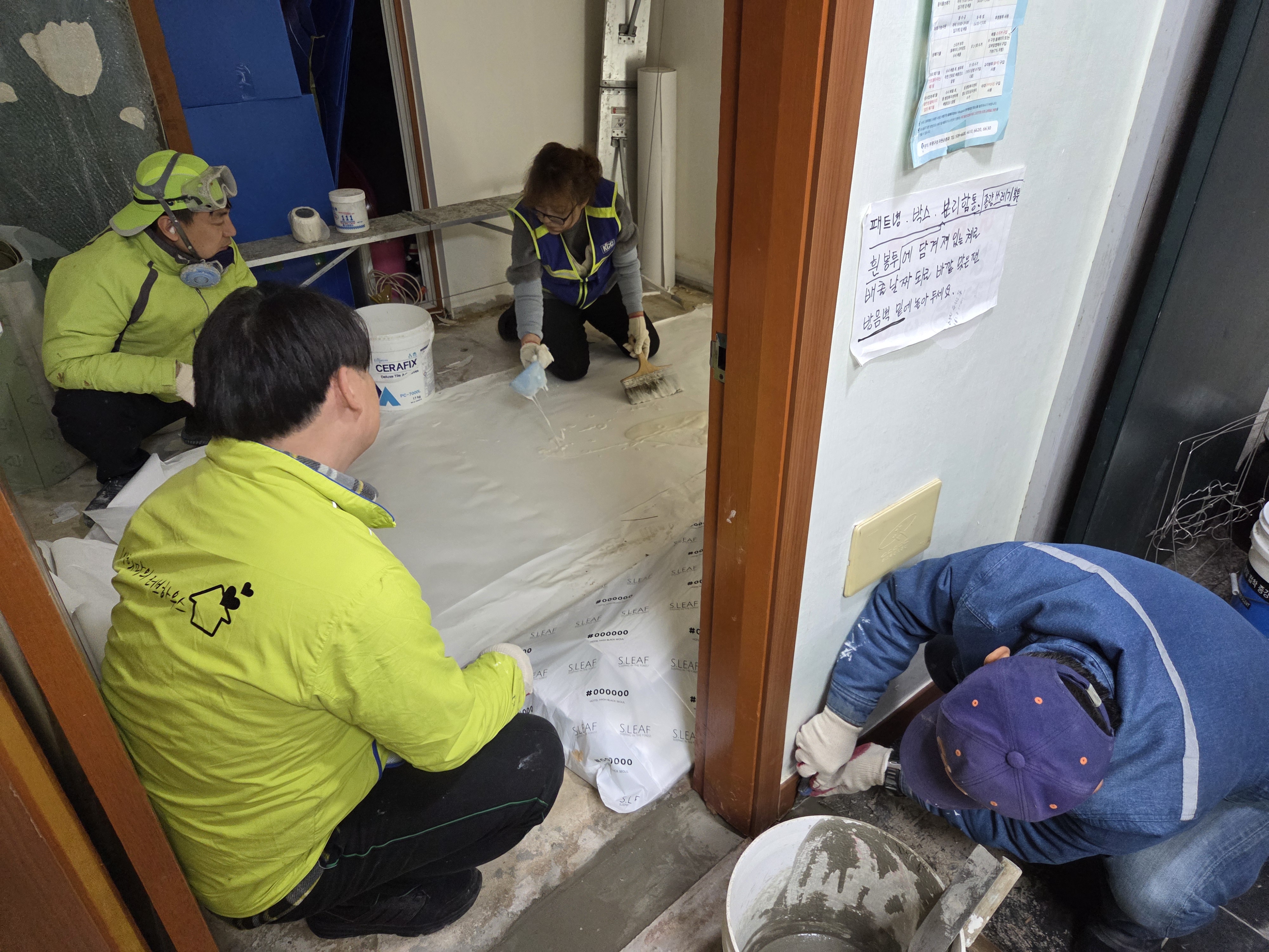 할머니가 누워계시는 방은 누수가 없어서 누수가 난 방 도배/장판과 거실 장판 작업. 그리고 화장실 천정 도배를 진행했습니다.