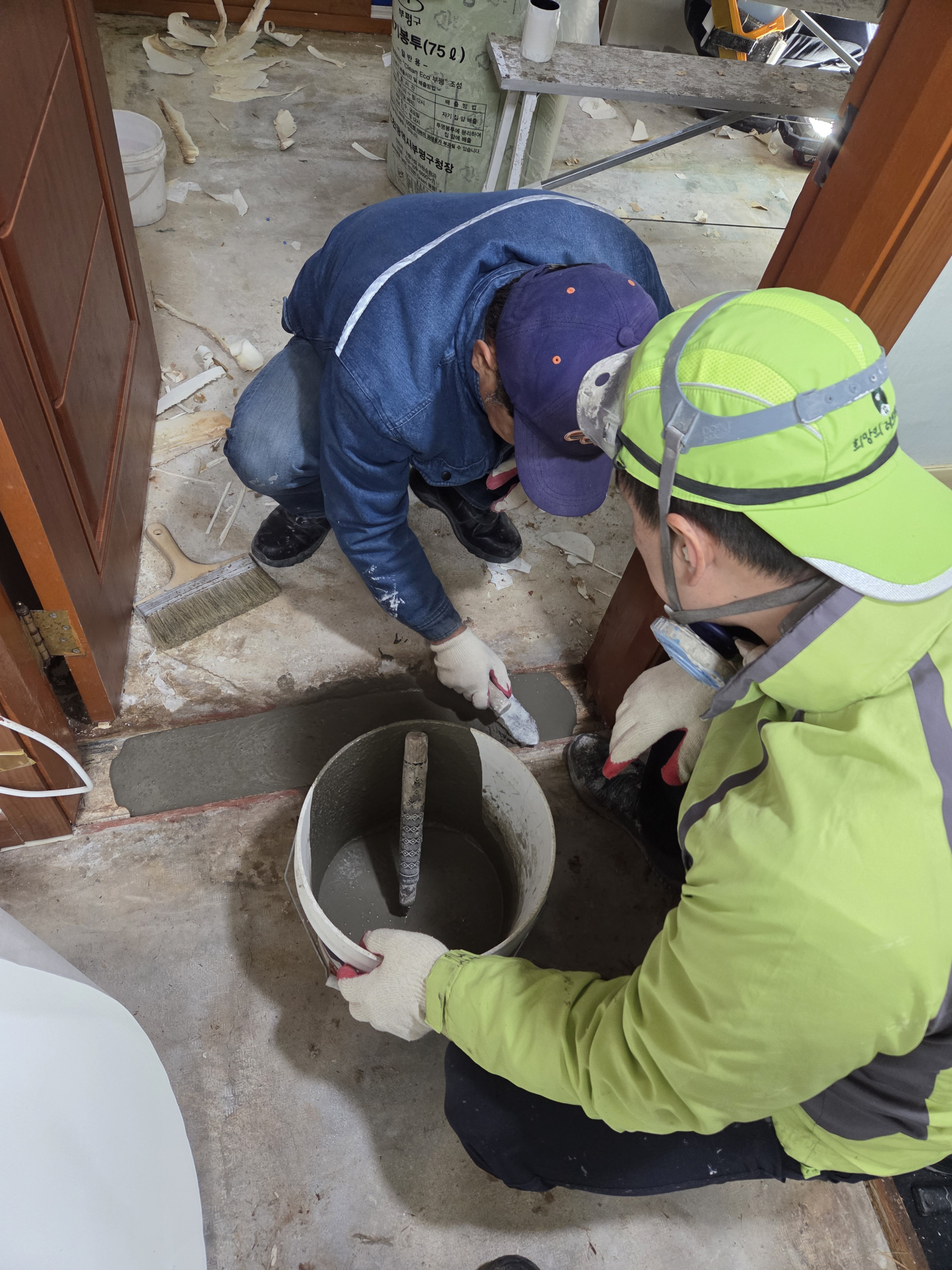 썩은 문틀을 빼내고 초속경 몰탈 채우고요.