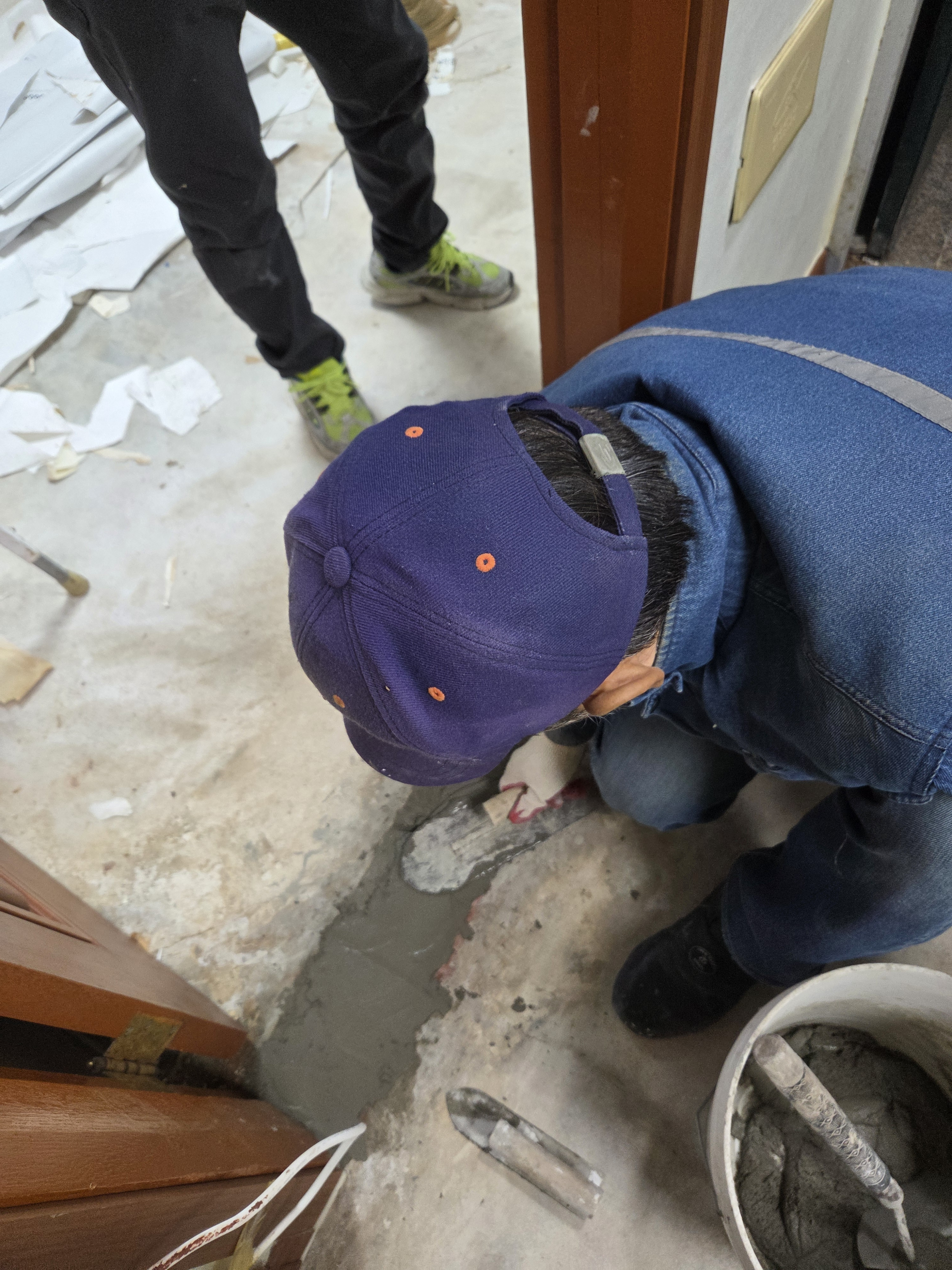 겨울이라 그런지 초속경몰탈인데도 잘 안굳네요. 살짝 양생이 된 후 칼질하고...