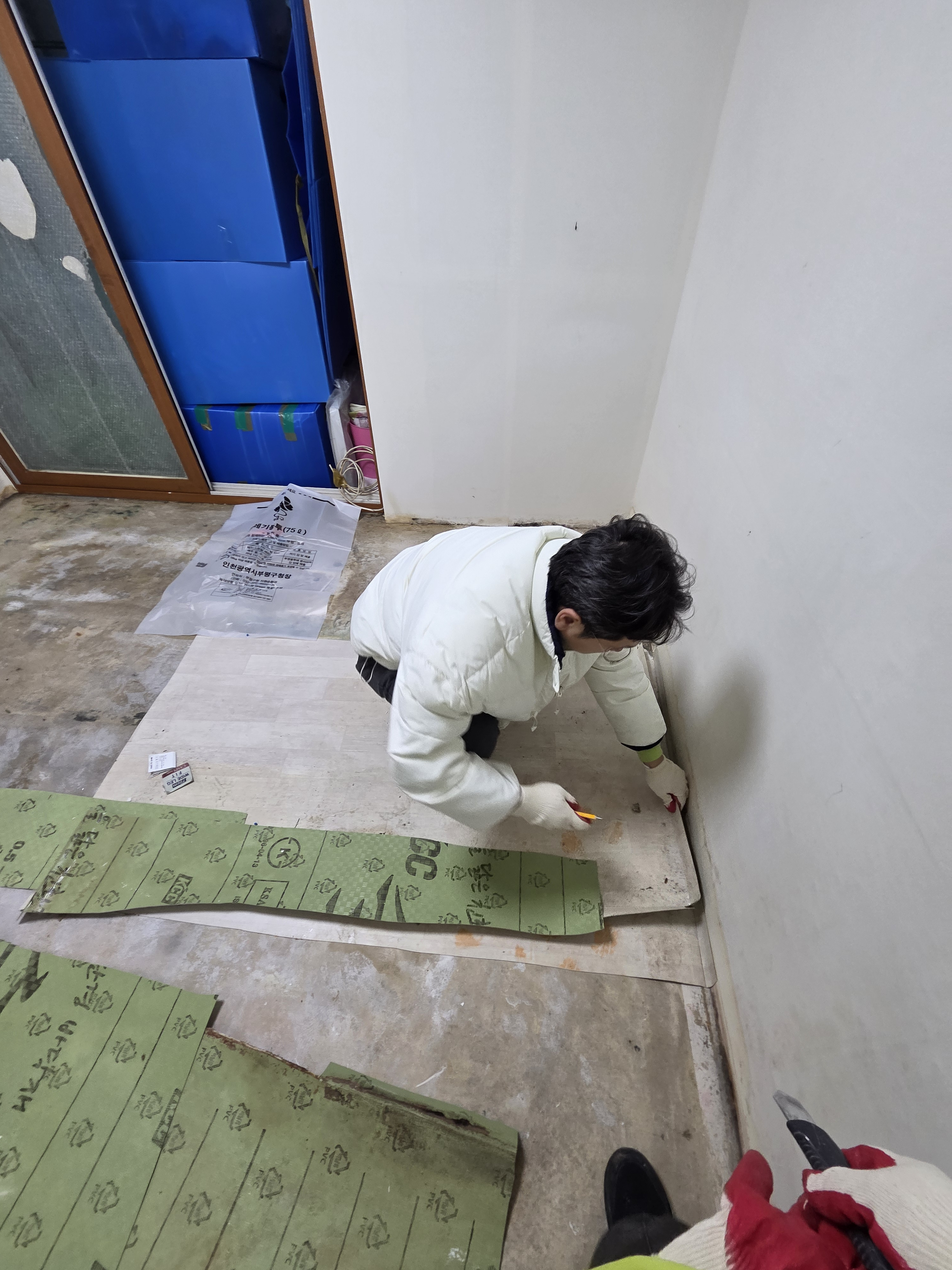 방 도배가 끝나고 장판 시공을 준비합니다.