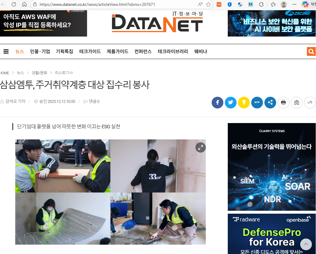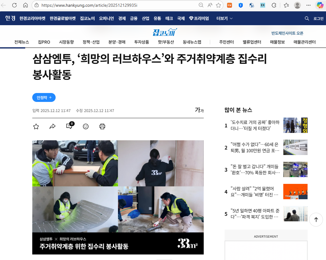 지난 12월 6일 광주 집수리 봉사활동이 신문 2곳에 기사화 되었습니다. 내용은 같습니다.