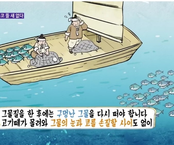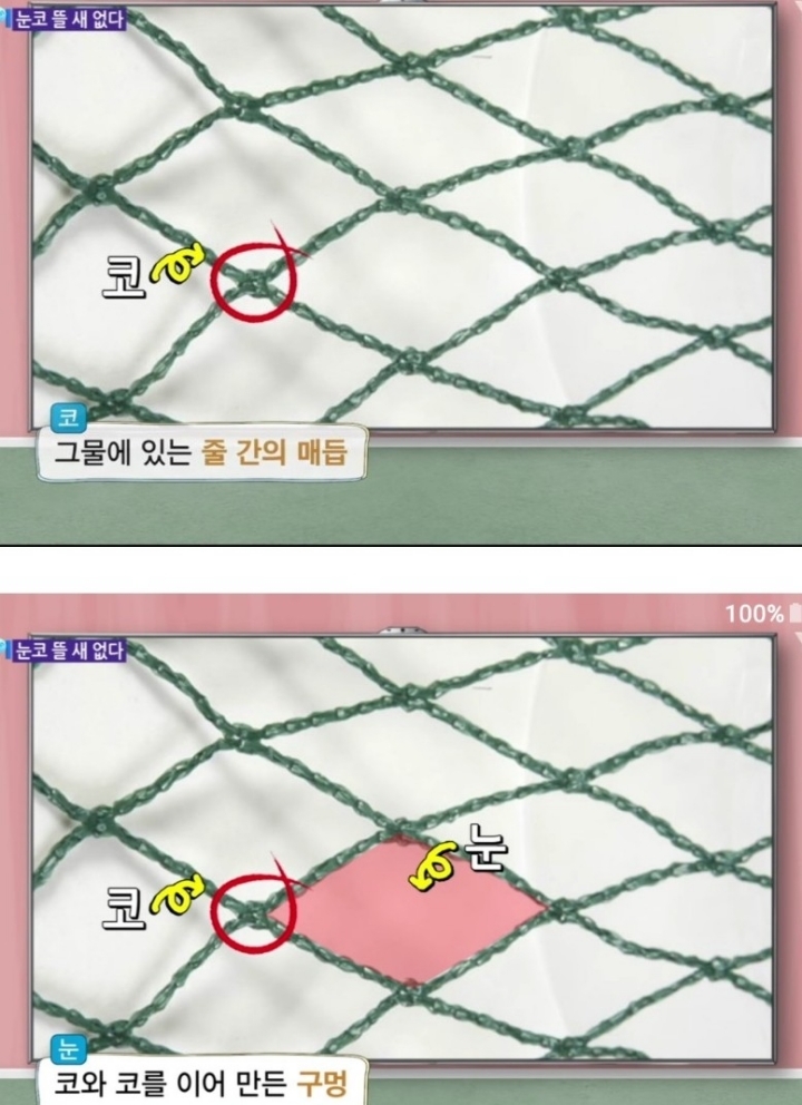 어촌에서 그물 짤 때 그 매듭을 말합니다.