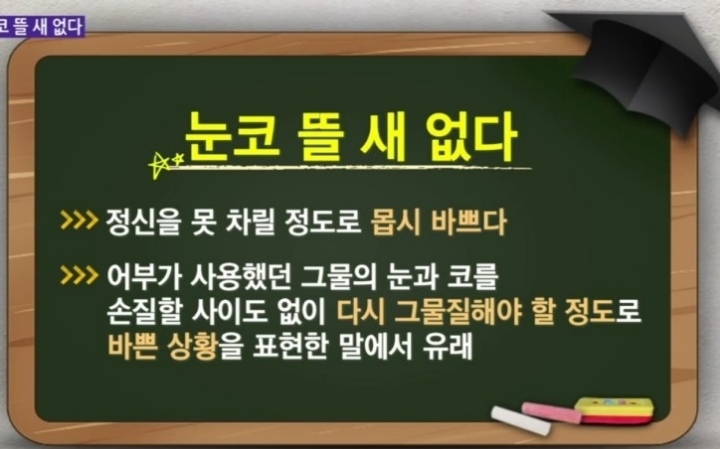 ' 눈코 뜰 새 없다'의 뜻을 배워봅니다.