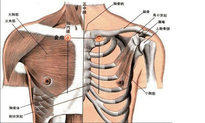 유부혈은 대흉근 부위에 해당되는데요.