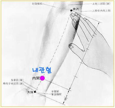내관은 손목 안쪽에 위치한 혈자리로