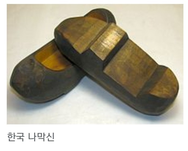 우리나라의 경우 소나무를 사용하여 신과 굽을 만들었는데, 나무를 재료로 하였기에 '나무신'이라 하다가 '나막신'이 되었답니다.