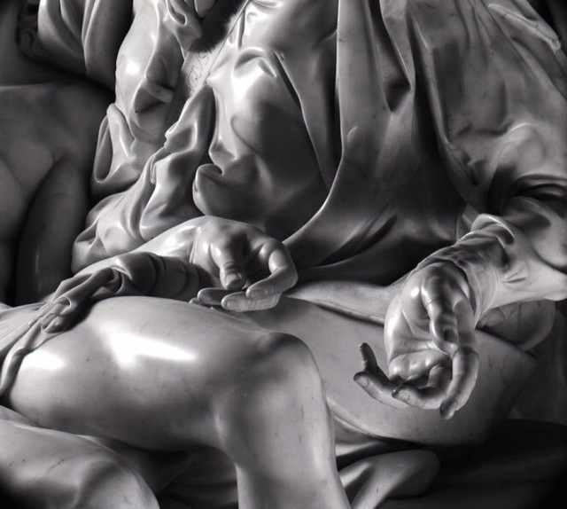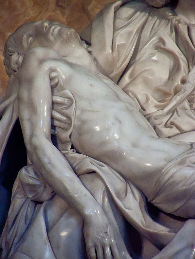 미켈란젤로는 북구 양식에서 영향을 받아 성모의 무릎 위에 그리스도의 몸을 가로로 늘어뜨렸으며 피라미드식 구도와 상세한 인물묘사를 통해 장엄함과 고통, 위대한 순종 등을 동시에 나타냈다. 미켈란젤로는 20대의 나이로 피에타를 조각했는데, 대리석 안에 들어있는 형상을 끌로 찾아냈을 뿐이라고 말했다는 일화가 전해진다.