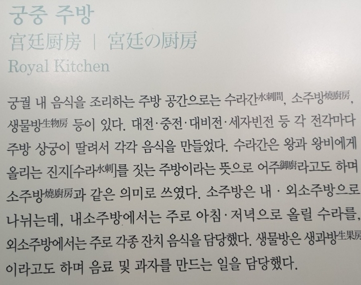 경복궁 소주방(燒廚房) 불때서 음식하는 부엌을 소주방이라고 합니다.