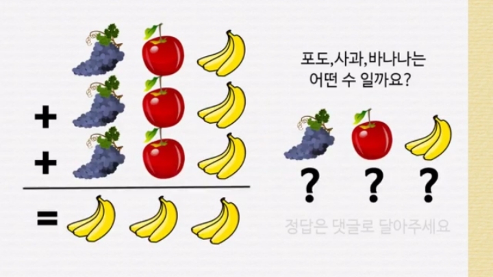 과일도형 문제 작성자오비최이락|작성시간20.04.16|조회수438 목록 댓글 0 글자크기 작게가 글자크기 크게가 알아맞춰보세요 다음검색 현재 게시글 추가 기능 열기 북마크 공유하기 신고 센터로 신고 댓글 댓글 0 댓글쓰기 답글쓰기 댓글 리스트