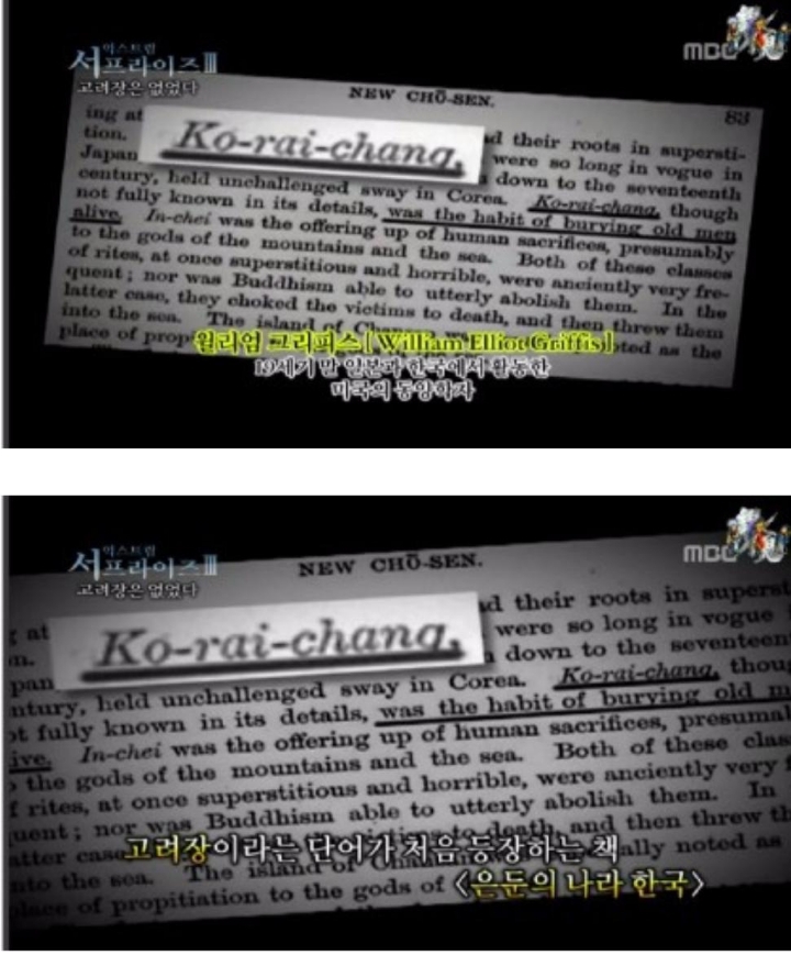 이 책에서 그리피스는 한국의 고대사회에서 노인을 산 채로 묻어버리는 고려장과 산신이나 해신에게 사람을 제물로 바치는 인제(人祭)가 성행했다고 서술했다.