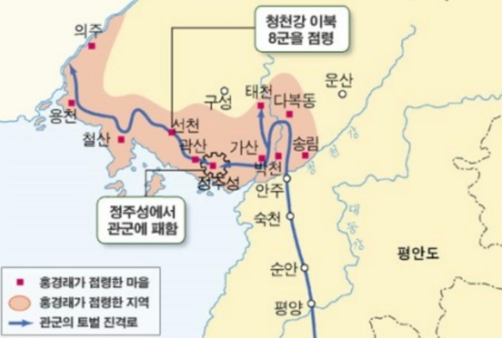 이렇게 홍경래군(洪景來軍)이 평안도의 소읍들을 점령해 나가는 동안 한양에서는 이요원이 이끈 진압군 2,000명을 평안도로 파병했다.