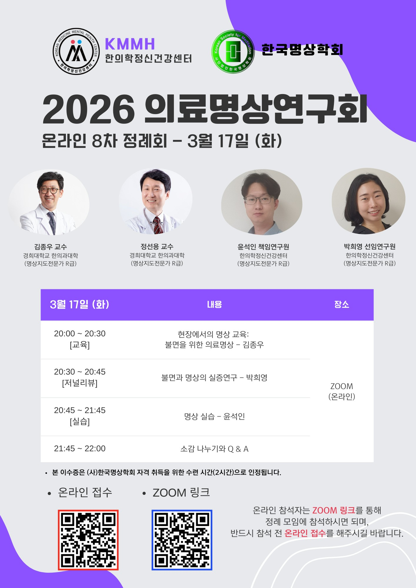 의료명상연구회 온라인 8차 정례회에 여러분을 초대합니다.