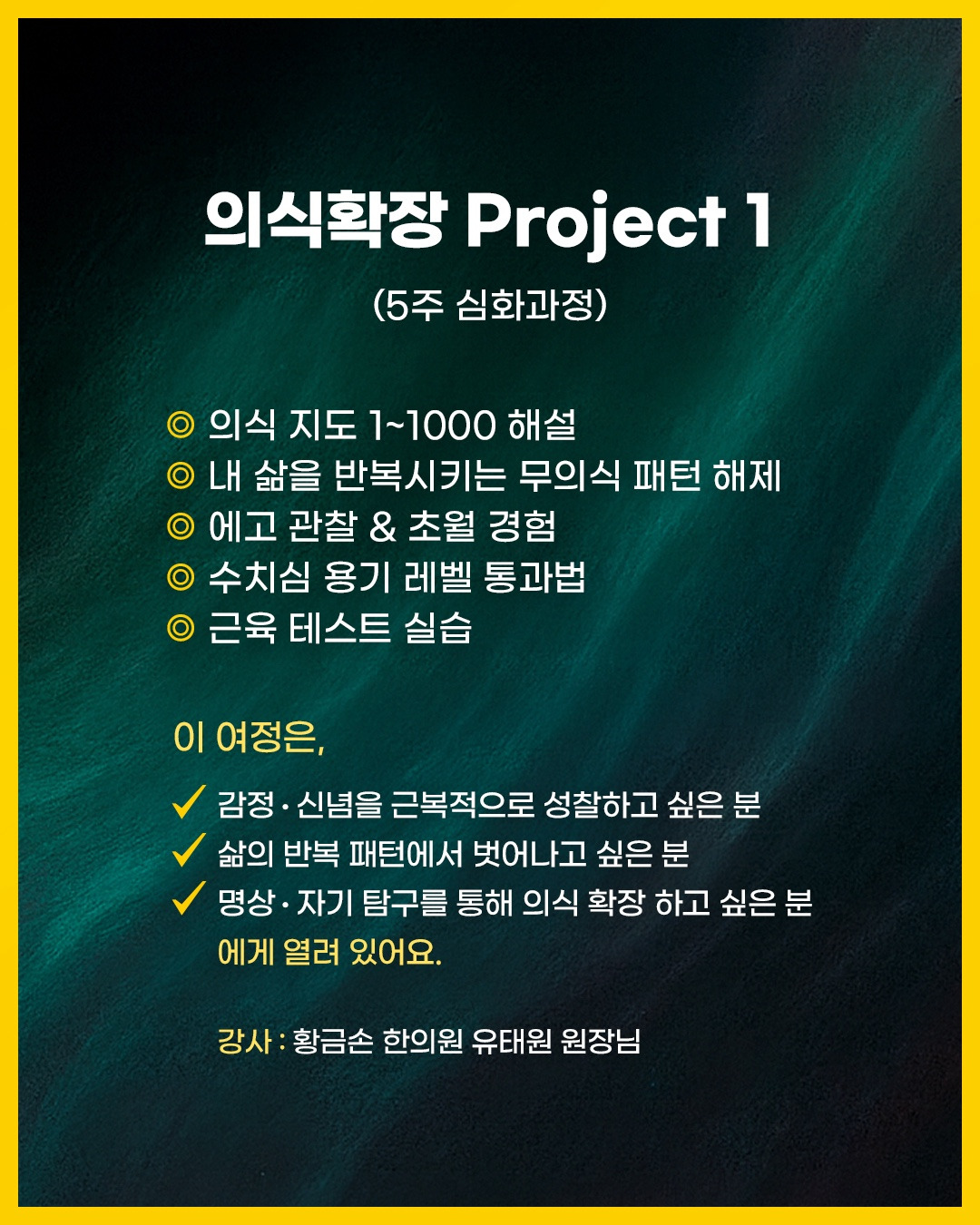 이 프로젝트는 데이비드 호킨스의 의식 지도 해설을 중심으로, 내면의 에너지장을 탐구하고 의식을 확장하는 5주간의 심화 과정입니다.