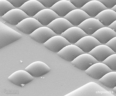 ▲전자 현미경으로 본 D600 CMOS 센서 표면의 마이크로 집광 렌즈