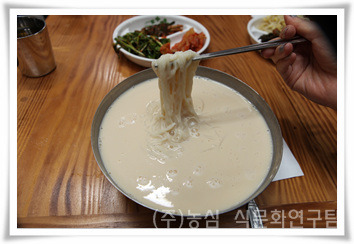 서울의 유명한 식당의 콩국수에 비해 묽은 콩국물로 후루룩 부담없이 먹을 수 있는데, 소면과 중면의 중간 두께의 국수가 쫄깃하고 탄력적이며 고명 없는 심플한 외관에서 콩국수의 자신감이 느껴졌다.