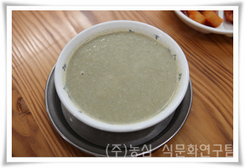 껍질을 제거하지 않았으나 부드럽고 비린내는 없으면서 콩물 특유의 고소이 노란 콩보다 더 구수하고,