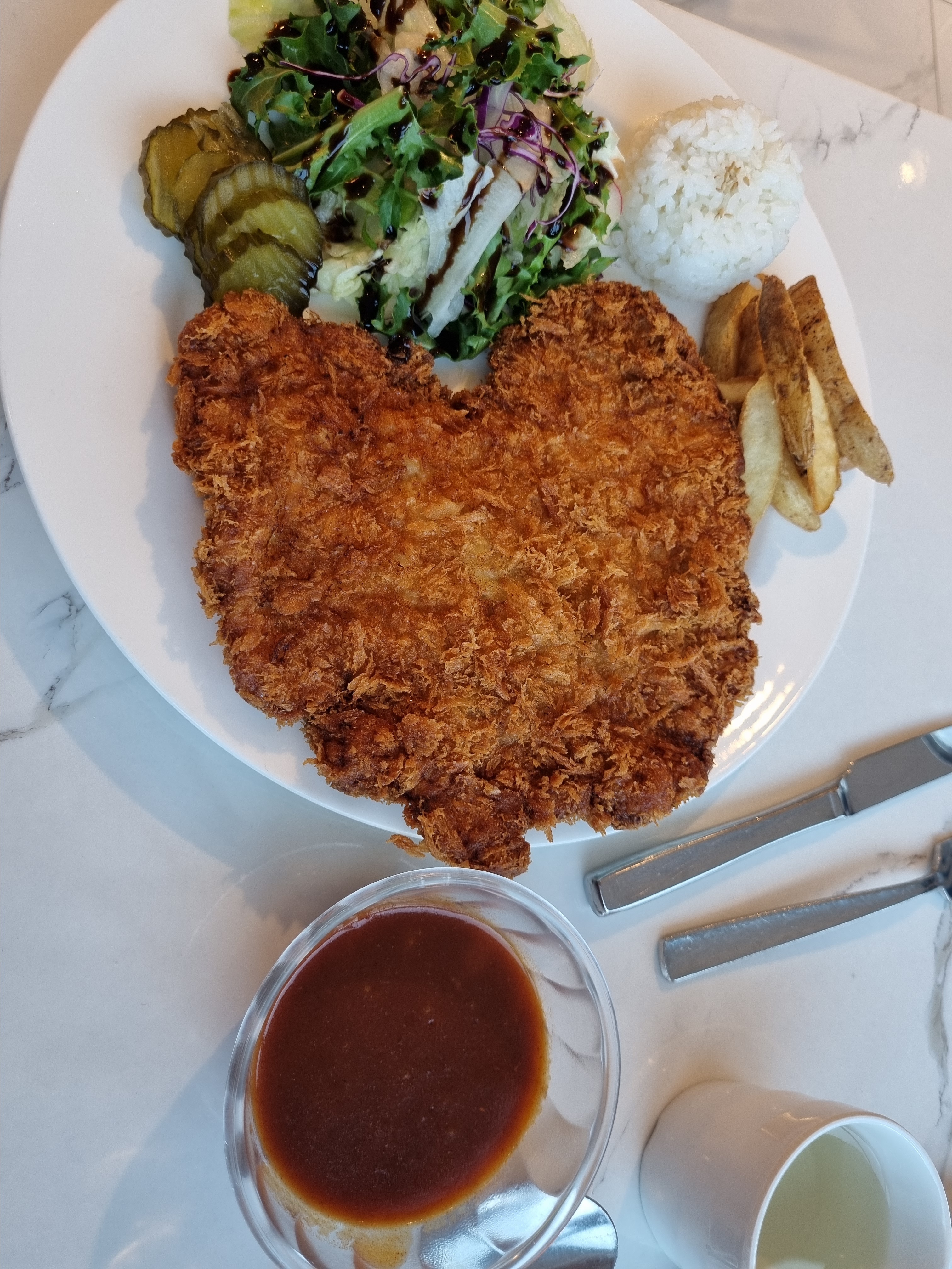 간장밥도둑 정식을 시키고 돈까스와 해물라면을 주문했다.